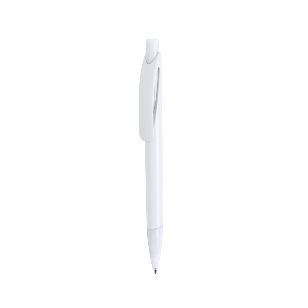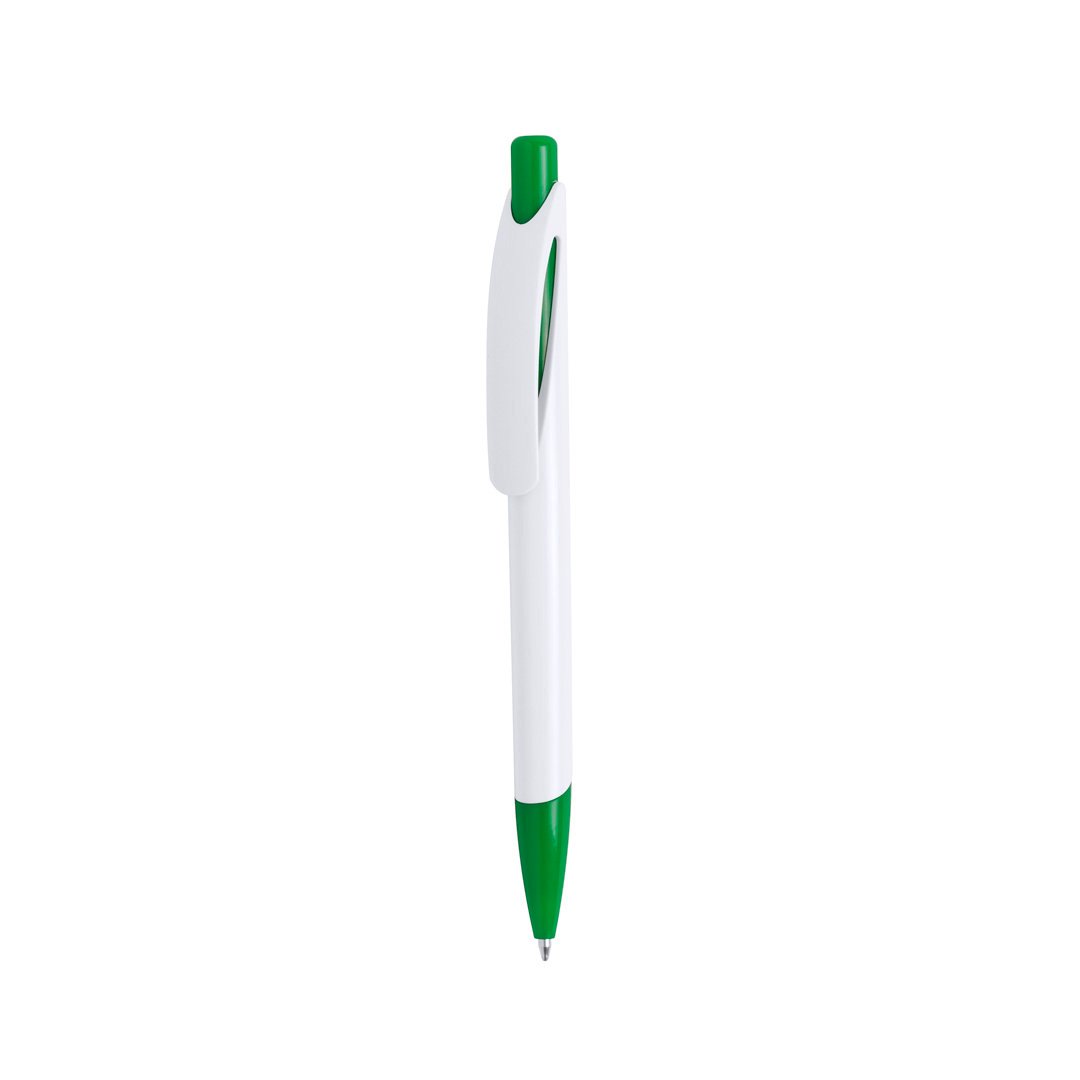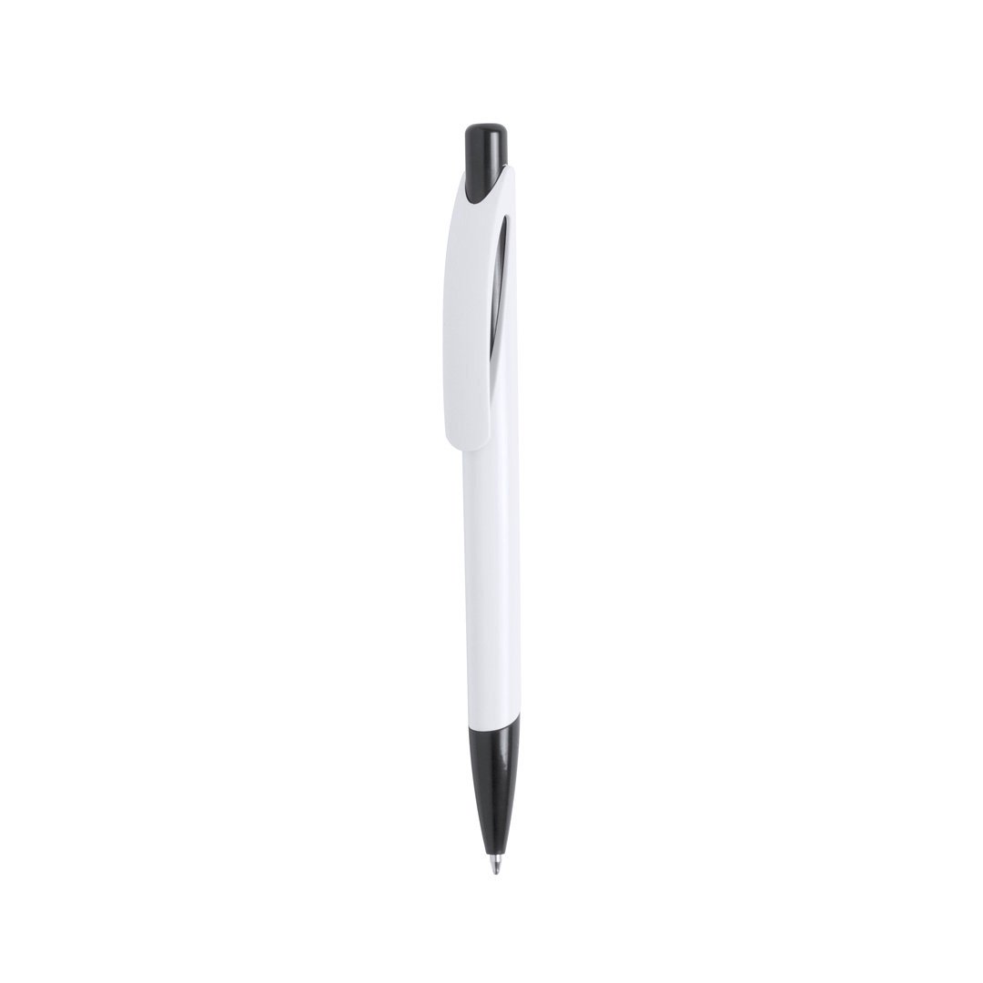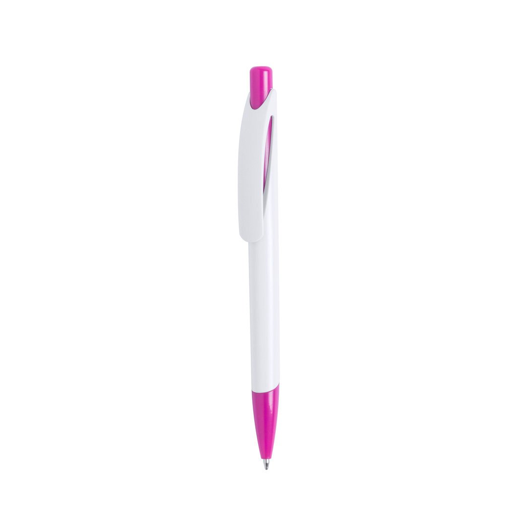 Stylo à poussoir bicolore avec accessoires en couleurs vives et pointe assortie, corps blanc. Clip courbé original. Encre bleue.