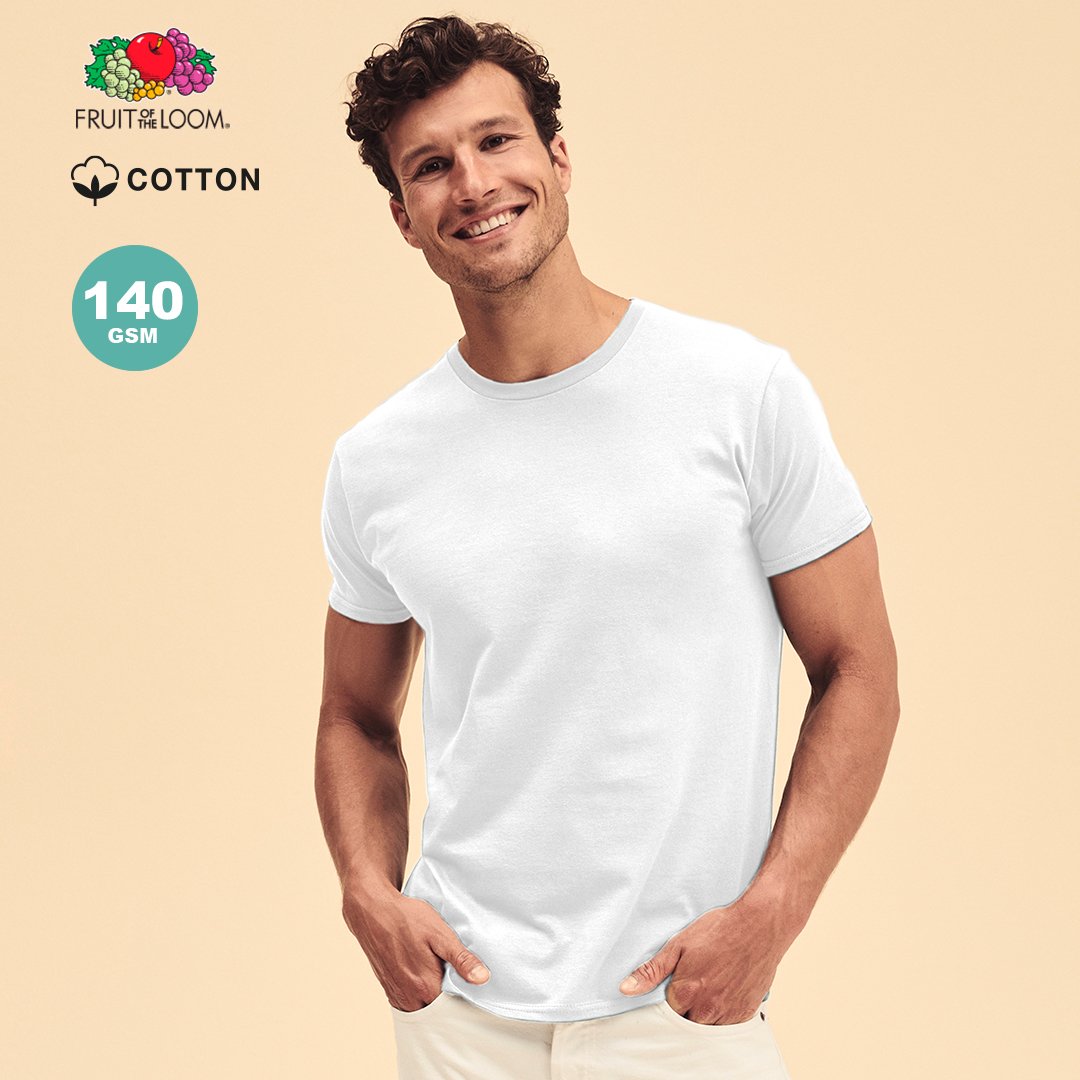 T-shirt blanc pour adultes Iconic de Fruit Of The Loom. Fabriqué 100% en coton peigné filé à lanneau avec Ring Spun de 140g/m2. Toucher doux et coupe moderne, avec cou rond étroit en côtelés 1×1 et patte de boutonnage assortie. Étiquette facilement détachable et disponible dans les tailles S, M, L, XL, XXL.