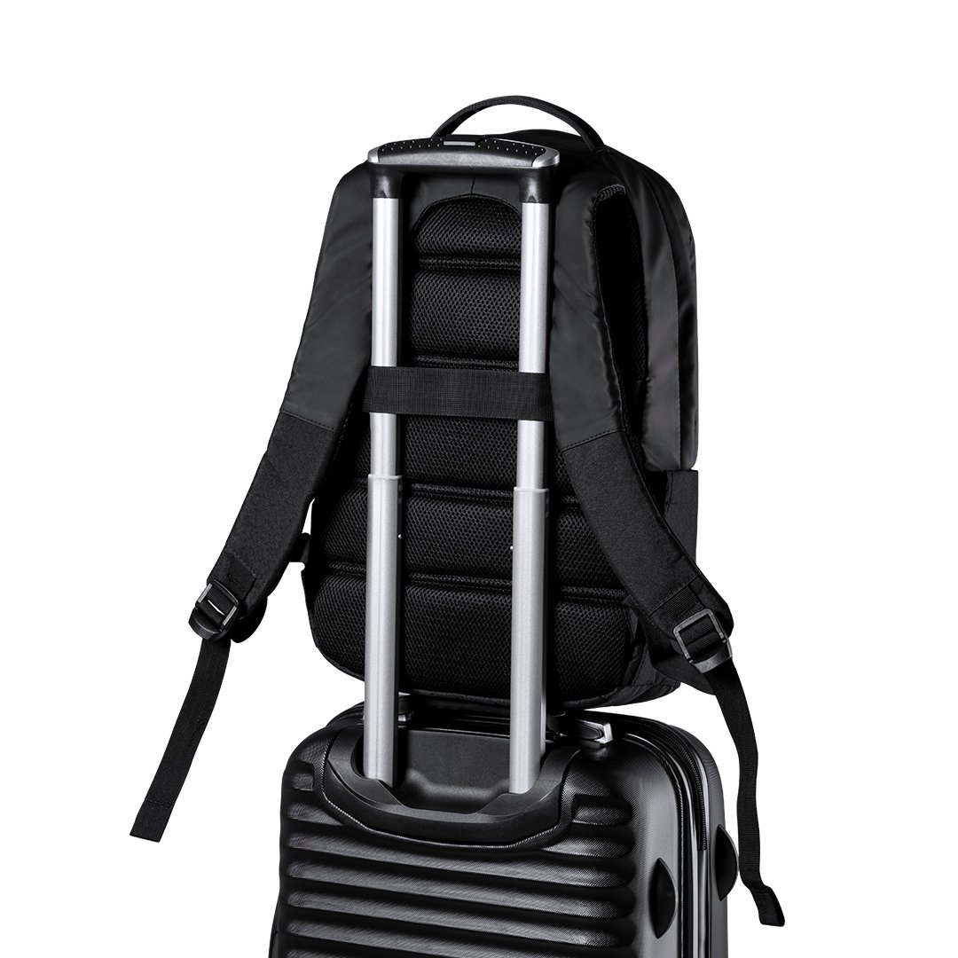 Sac à dos dAntonio Miro de qualité supérieure en polyester 600D durable avec un design sobre en noir. Avec fermeture à glissière, poche frontale et poignée métallique renforcée. Dos et bretelles ergonomiques rembourrés, compartiment intérieur rembourré pour ordinateur portable jusquà 15 et tablette jusquà 10. Pochettes intérieures pour stylos et smartphone. Avec le logo de la marque en frontal.