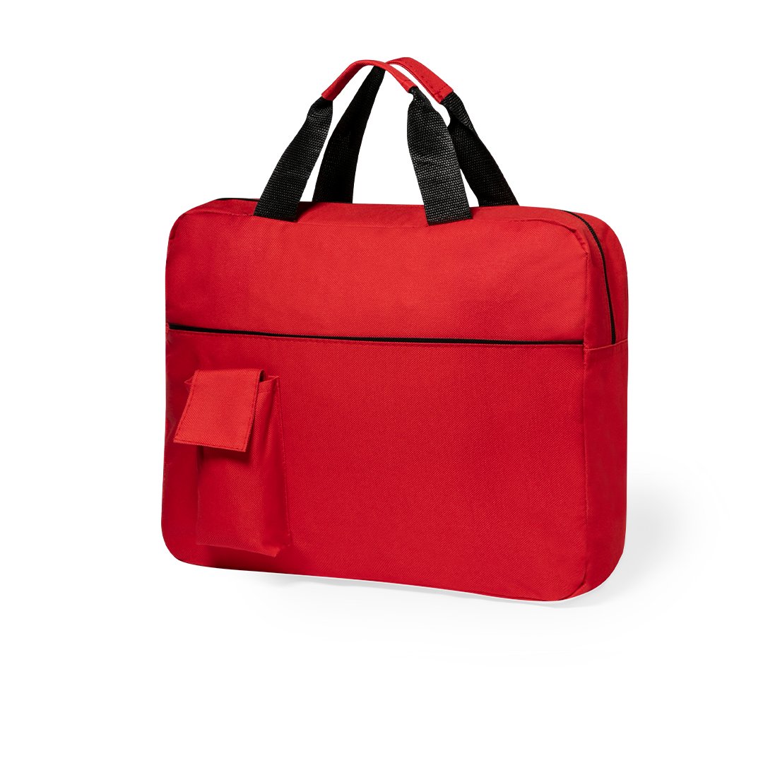 Sacoche porte-Documents avec fermeture zippée en polyester 600D doux aux couleurs vives. Avec poignées de transport renforcées assorties et poche frontale pour smartphone avec fermeture velcro.