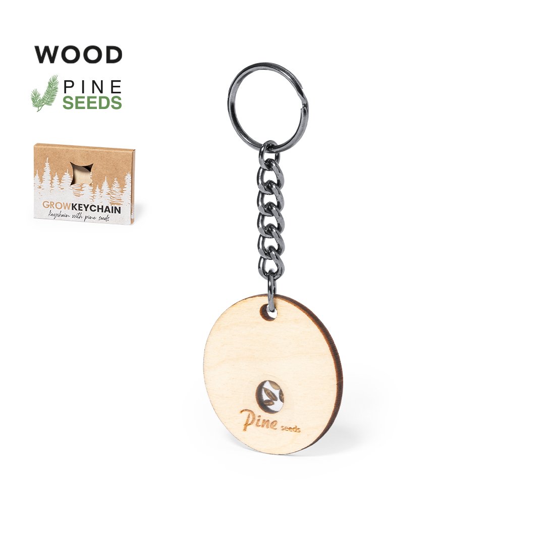 Porte-clés en douce et élégante madera de hêtre. Il inclut une capsule avec des graines de pin. Un cadeau respectueux et durable qui encourage et promeut la protection de l’environnement. Présenté dans une boîte individuelle au design kraft.