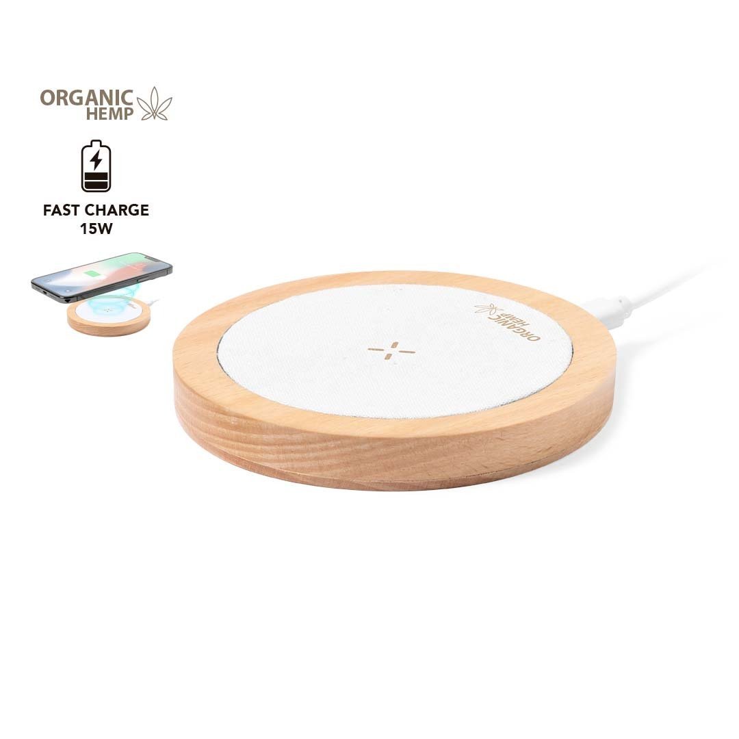 Chargeur sans fil de 15W, avec un boîtier fait d’une combinaison de chanvre organique et de bois naturel. Compatible avec les appareils équipés de la technologie de charge sans fil Qi. Comprend un câble de chargement Type C et un manuel d’instructions en espagnol et en anglais. Présenté dans une boîte individuelle au design kraft.Le chanvre est obtenu à partir de la plante de cannabis, dont les processus de culture et de production de fibres sont respectueux de l’environnement, ce qui donne un matériau très résistant, naturel et durable. Fabriqué conformément aux normes RoHS et en conformité avec les exigences de sécurité suivantes :Système de protection contre la surchauffe.Système de protection contre les surcharges.Système de verrouillage pour éviter les courts-circuits.