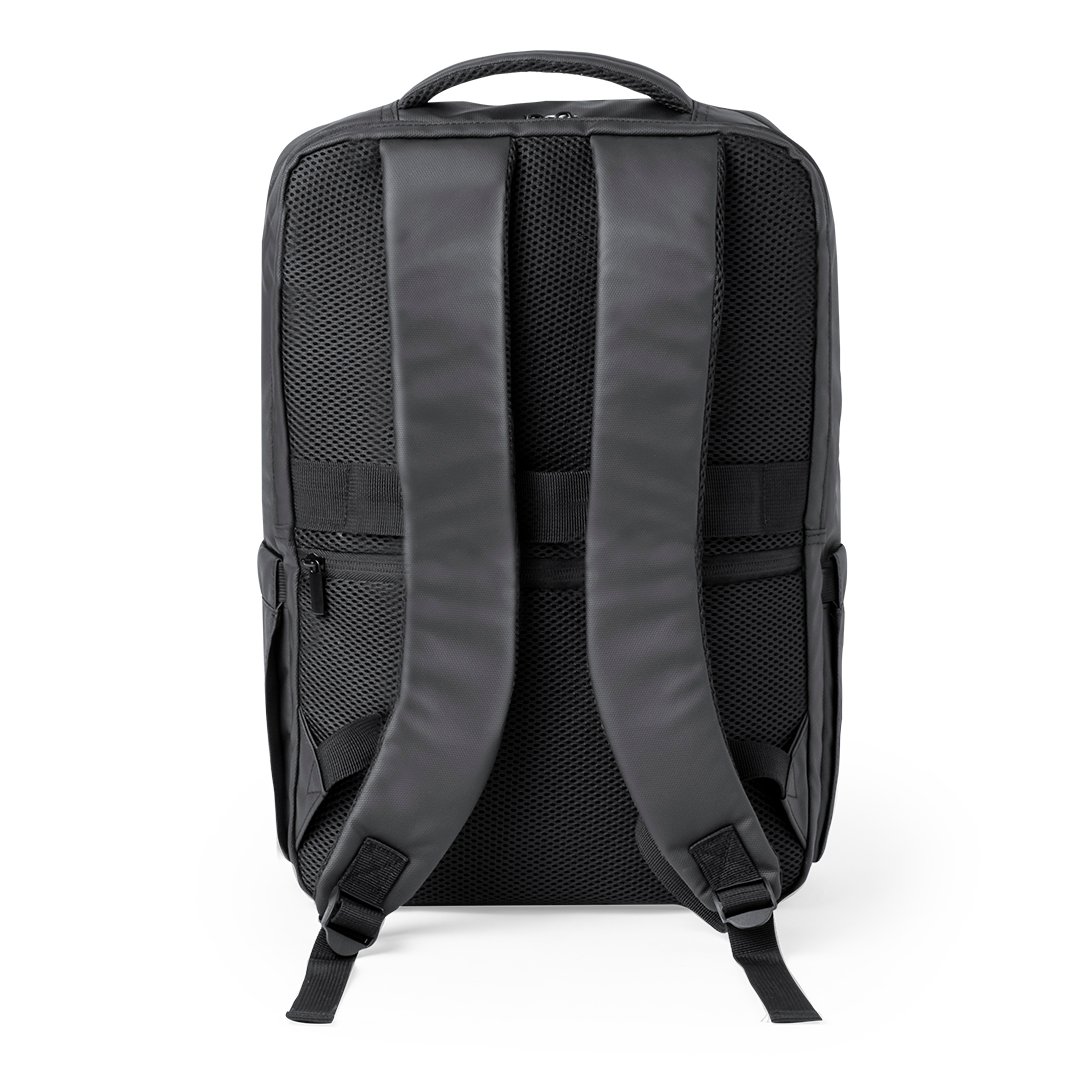 Sac à dos Antonio Miró de qualité premium en éco-cuir robuste de conception sobre en couleur noire. Avec fermeture à glissière double, poche avant et poignée renforcée rembourrée. Avec rembourrage ergonomique sur le dos et les bretelles, il comprend un compartiment intérieur rembourré pour ordinateur portable jusqu’à 15 pouces et pour tablette jusqu’à 10 pouces. De plus, une poche antivol avec fermeture à glissière à l’arrière. Étuis intérieurs pour stylos et smartphone. Avec logo de la marque sur le devant.