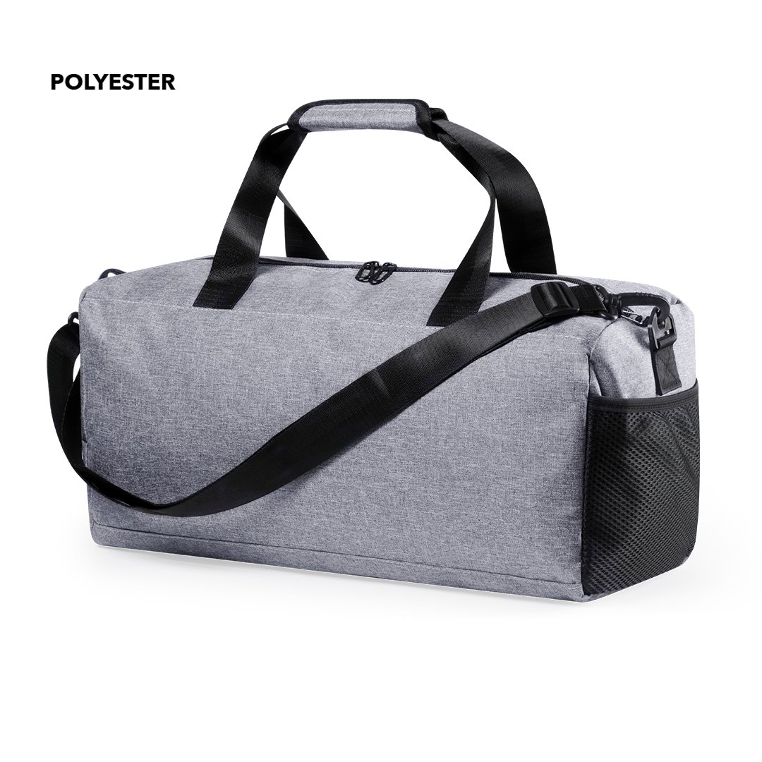 Sac polyvalent en polyester denim 600D résistant et design décontracté bicolore, avec un corps gris et des détails noirs. Compartiment principal avec fermeture zippée et double tirette, poignées en nylon résistant avec renforts et poche latérale en filet. Avec bandoulière réglable.