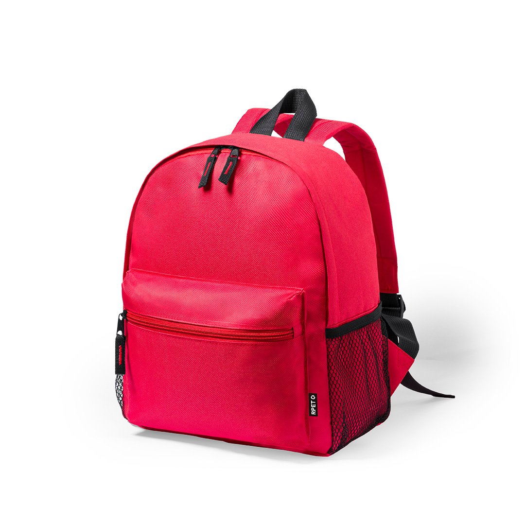 Sac à dos pour enfants en RPET 600D durable, fabriqué à partir de plastique recyclé, pour promouvoir la réutilisation des déchets plastiques et contribuer à la durabilité de la planète. Avec fermeture à glissière et poche sur le devant, poignées à ouverture facile et poches latérales en filet. Dos et bretelles rembourrés et réglables. Badge RPET sur létiquette et disponible dans une gamme de couleurs.