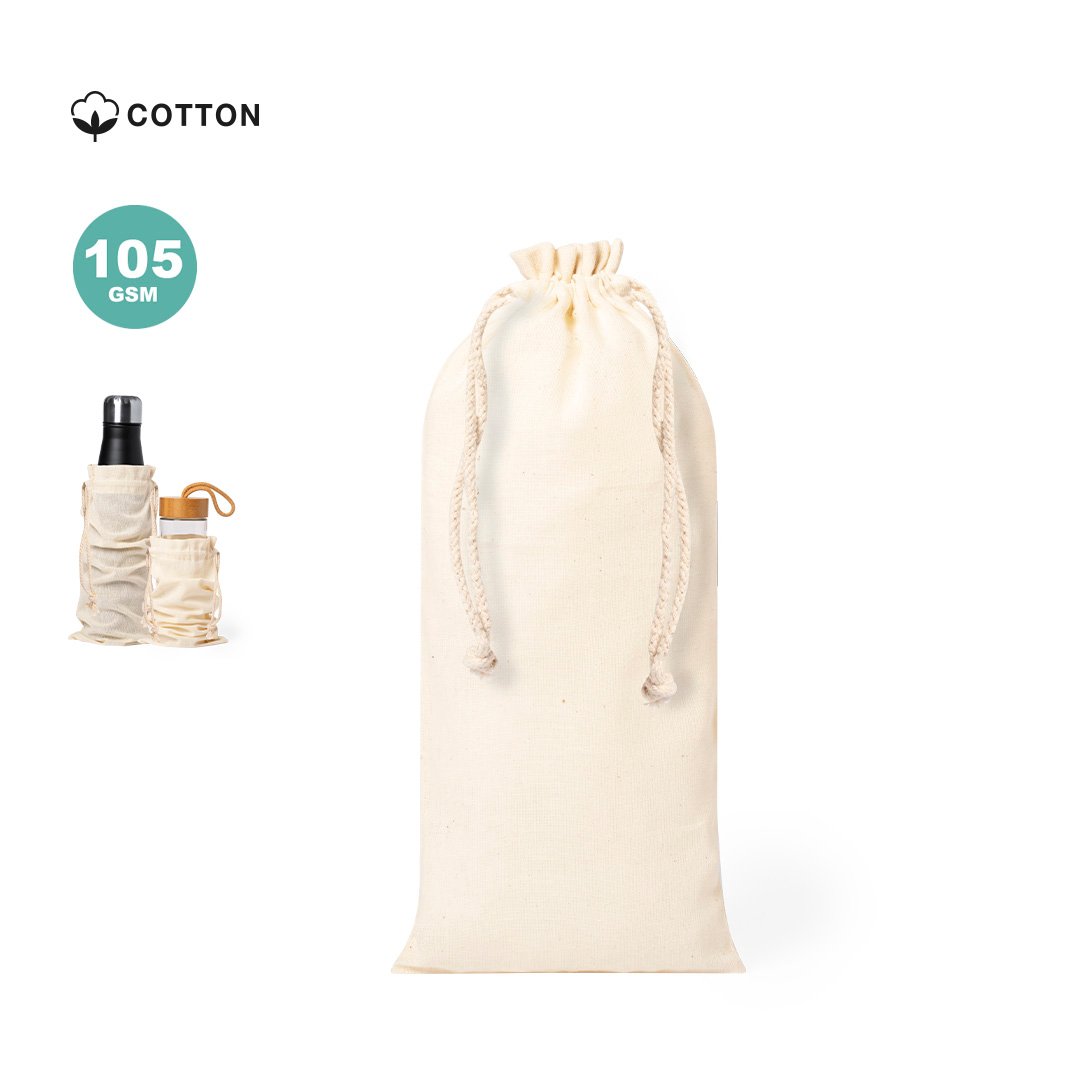 Sac Gamme éco-friendly coton de 105g / m2. Taille 12×33 cm, avec une finition cousue et fermeture en cordellette. Spécialement conçu pour ranger votre gourde ou thermos dans votre sac.