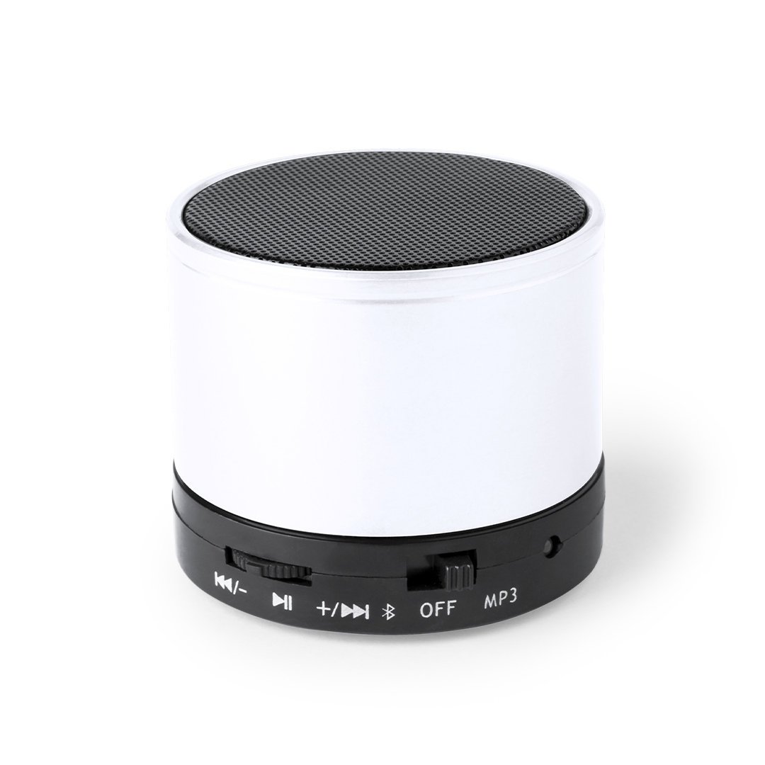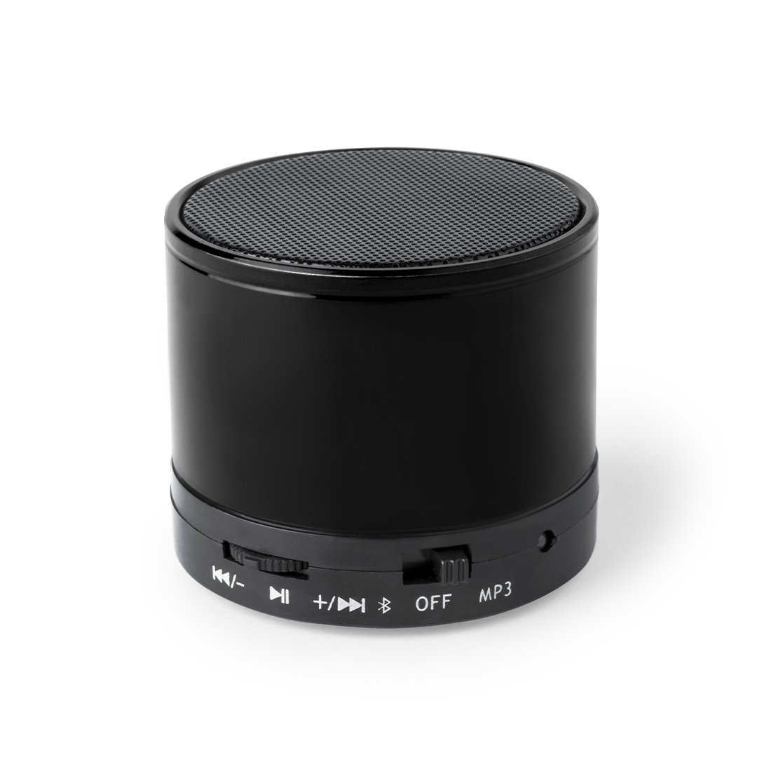 Enceinte compacte avec connexion Bluetooth® 5.0 et puissance de 3 W. Fonction mains libres, fente pour cartes mini SD jusqu’à 64 Go de capacité, fonction radio FM et entrée de ligne auxiliaire via une connexion jack 3,5 mm. Avec des supports en caoutchouc antidérapants sur la base. Compatible avec iOS et Android, comprend un câble de charge et un câble auxiliaire jack 3,5 mm. Présenté dans une jolie boîte design, avec un manuel d’instructions en espagnol et en anglais. Disponible dans une large gamme de couleurs métalliques. »