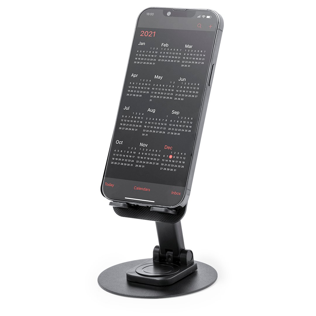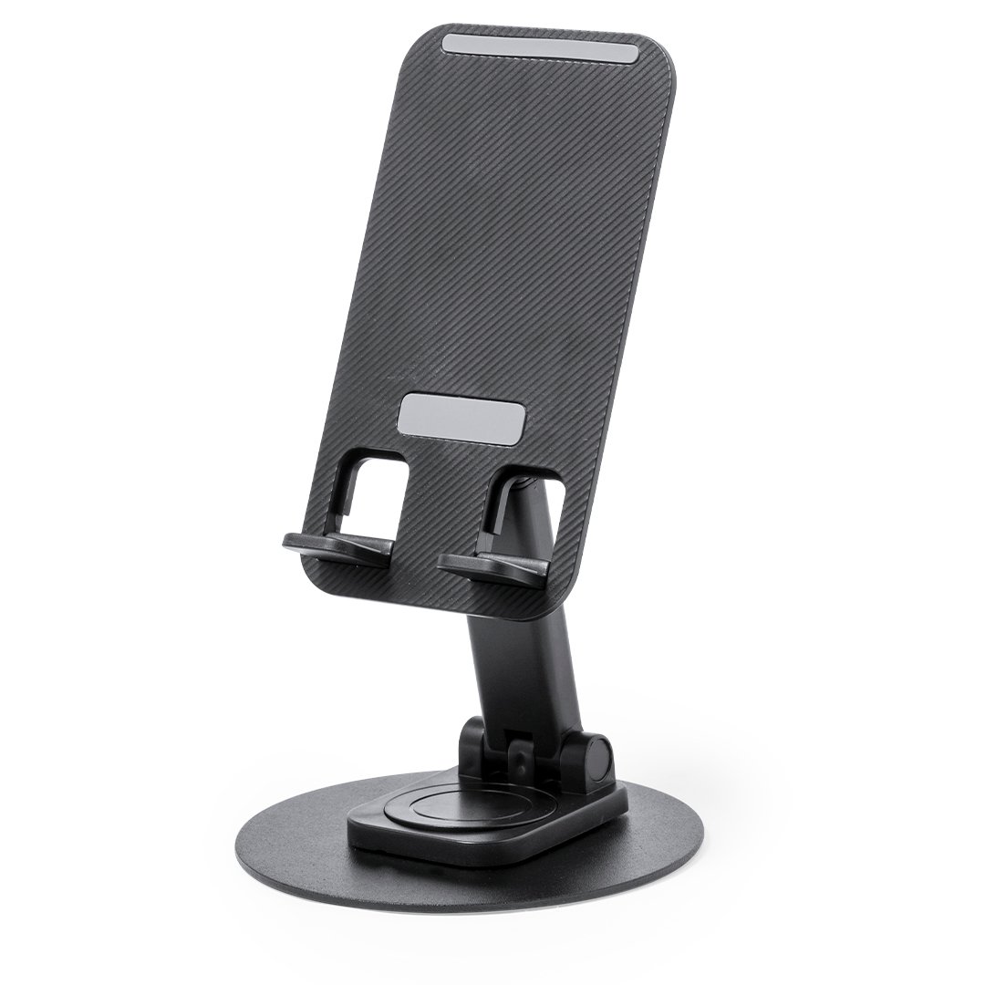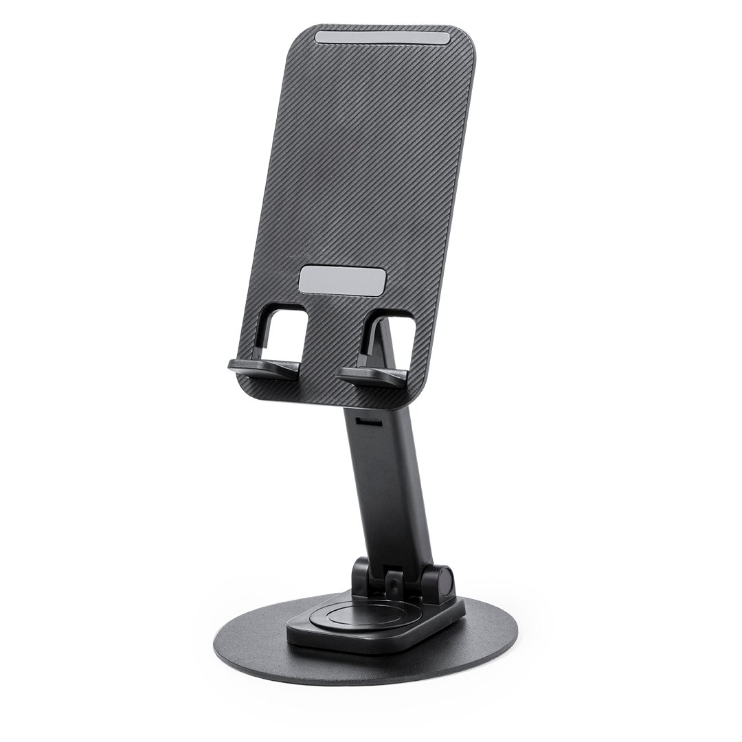 Support pliable pour smartphone et tablette, fabriqué en aluminium robuste et ABS. Réglable en hauteur, avec coussinets en caoutchouc antidérapants sur la base et le support. En noir ou blanc finition sobre, et avec une grande surface de marquage. Présenté dans une boite de conception attrayante.