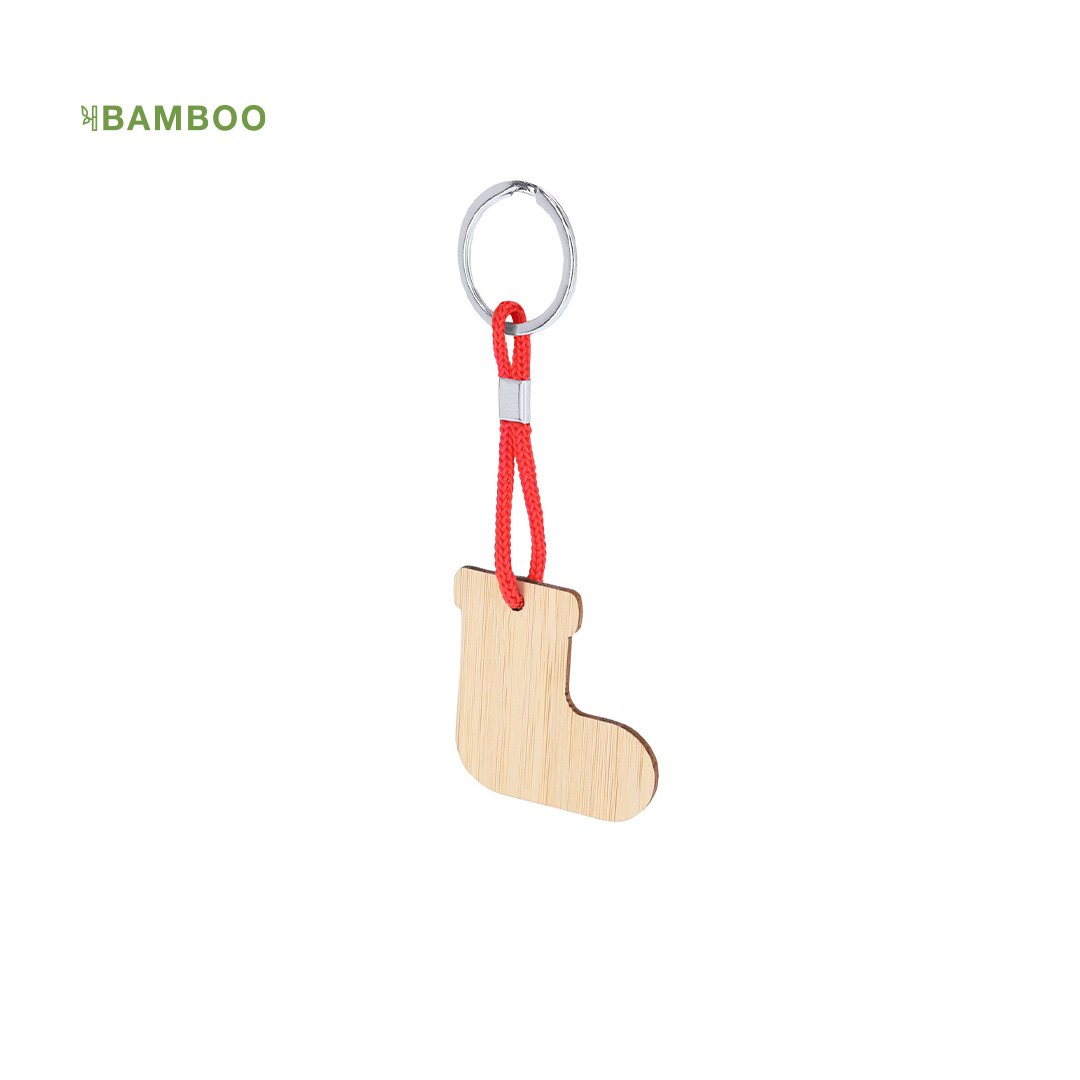Porte-clés en bambou avec motifs de Noël. Disponible en quatre designs originaux : Renne, Chapeau de Père Noël, Sapin de Noël et Chaussette.Des matériaux tels que le bambou favorisent l’utilisation de matières premières naturelles, réduisant ainsi les émissions de polluants. Il provient d’une plante très résistante et polyvalente, à croissance et régénération rapides, ce qui en fait une excellente alternative à l’utilisation du bois traditionnel.