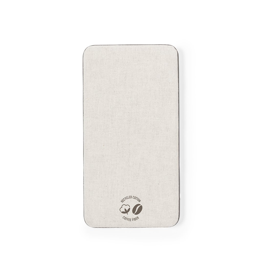 Batterie auxiliaire externe de 5 000 mAh, en fibre de café et coton recyclé. Avec 2 sorties USB, une entrée micro USB et une double connexion d’entrée et de sortie de type C. Câble de charge de type C inclus et présenté dans une boîte individuelle au design kraft. Avec fibre de café distinctive et coton recyclé. Manuel d’instructions disponible en espagnol et en anglais.La fibre de café est une solution circulaire obtenue à partir de l’utilisation des déchets produits lors de l’obtention du café. Une alternative durable qui favorise la réduction de l’utilisation des plastiques, économise de l’énergie dans son processus de fabrication et contribue à la protection de l’environnement.Entrée/sortie USB C : 5 V CC 2,4 VSortie USB : CC 5 V 2,4 AEntrée micro USB : CC 5 V 2,1 ALes capacités indiquées dans toutes nos batteries auxiliaires externes sont réelles, toutes incorporant des batteries de grade A et non recyclées, avec une durée de vie utile d’au moins 500 cycles de charge et conformes aux réglementations CE.Certification GRS disponible (Global Recycled Standard / Global Recycling Standard), qui garantit l’origine recyclée du matériau utilisé pour fabriquer le produit.De plus, ils sont fabriqués conformément aux normes RoHS et dans le respect des exigences de sécurité suivantes :Système de protection contre les surcharges de banque d’alimentation.Système de protection contre les décharges complètes qui offre une plus grande durabilité de la banque d’alimentation.Système de blocage pour éviter les courts-circuits.Système de transfert de charge constant, selon la capacité de l’appareil de destination.