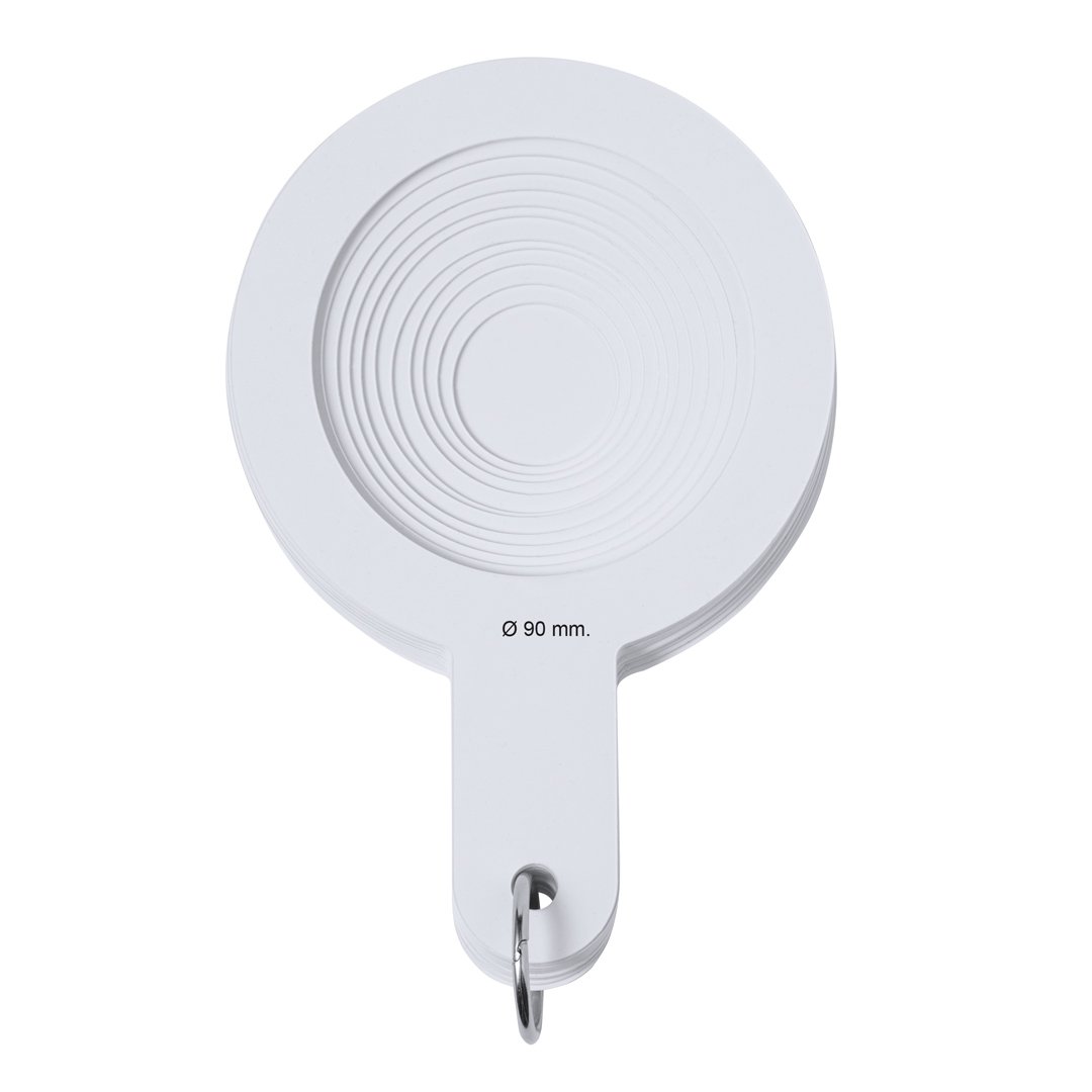 Étalonneur manuel fabriqué en PP résistant. Pour les diamètres de 30mm à 90mm, parfait pour la mesure et le tri en temps réel et selon les tailles. Il dispose de 8 gabarits qui augmentent progressivement toutes les 2 mm, dont un avec une surface plane pour le marquage. Unis par une bague de transport pratique.