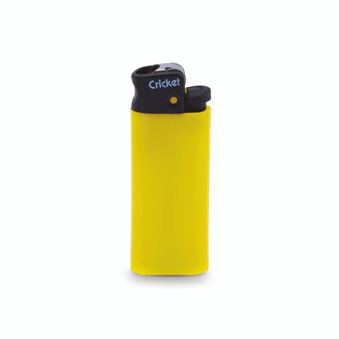 Mini briquet classique Cricket. Gaz, mécanisme de pierre et protection enfant. Disponible dans une large gamme de couleurs unies. Servi en boites de 50 unités de la même couleur.