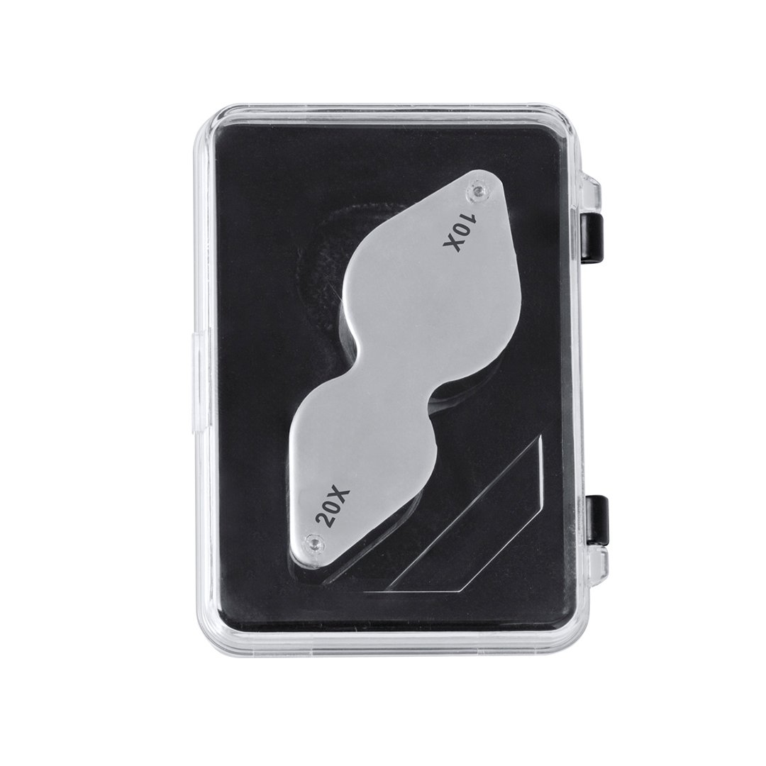 Loupe pliante double avec grossissement 10x et 20x, fabriquée en métal résistant. Grande puissance d’agrandissement pour une vision très proche des plus petits détails, avec agrandissement sans distorsion. Idéal pour l’inspection des objets de taille réduite, des textes, etc. En outre, il est placé dans un étui avec un intérieur rembourré pour une meilleure protection. Présentée dans une boîte en carton noir.
