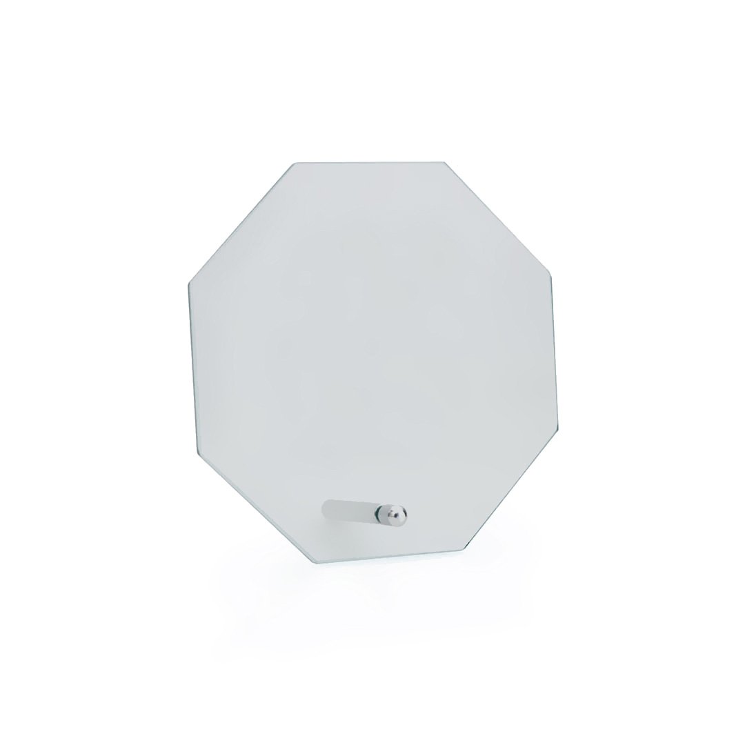 Plaque trophée en verre épais dans une élégante forme octogonale. Spécialement conçue pour le marquage laser et présenté dans un étui de protection individuelle.