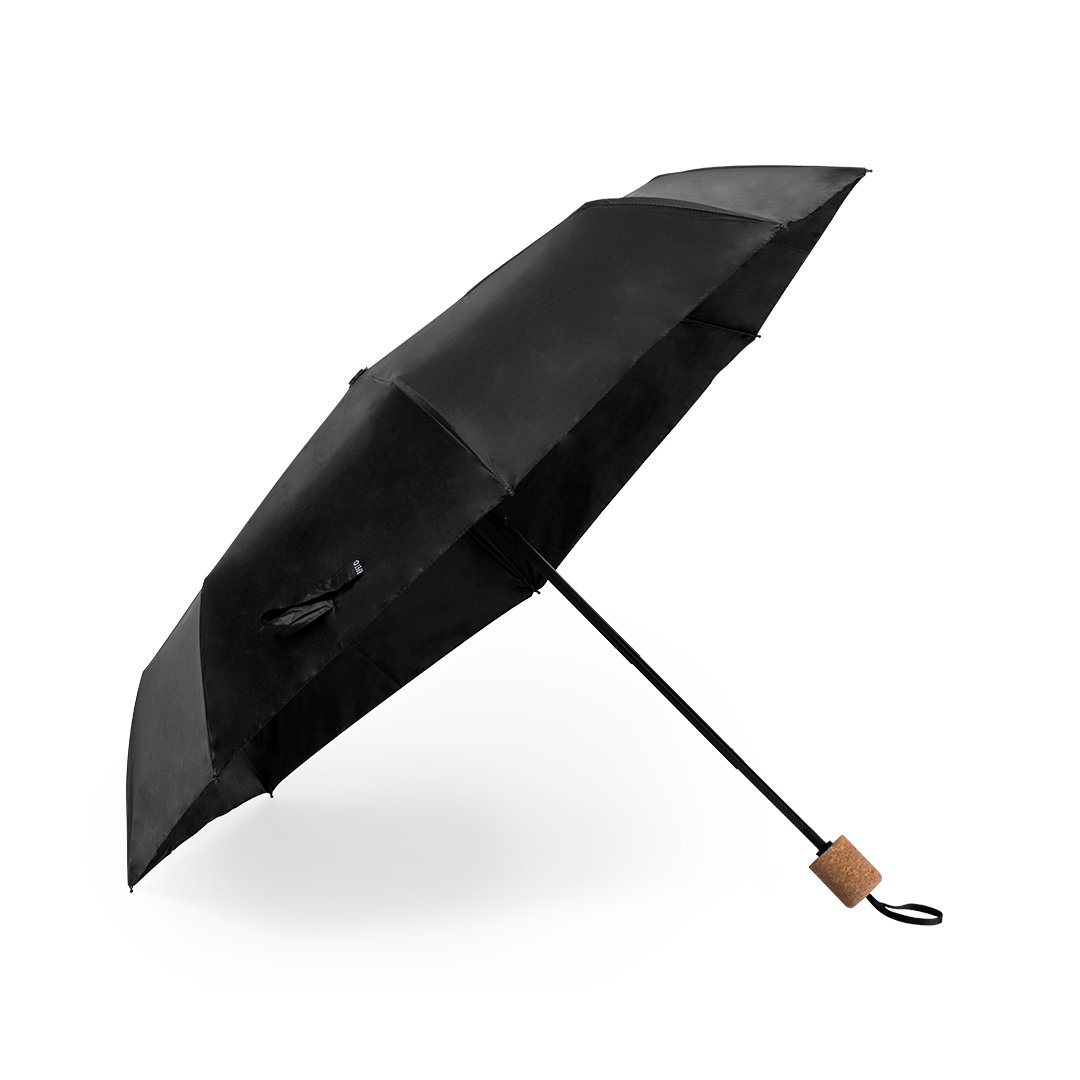 Ombrello Pongee 190T. Asticelle Vetroresina. 21″. Sistema Antivento. Manico Sughero. Custodia Pongee RPET