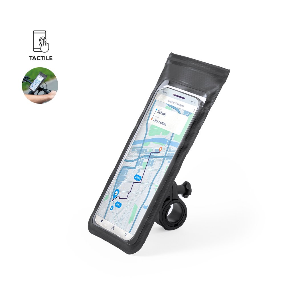 Housse imperméable et tactile pour smartphone conçue pour les vélos. Facile à fixer à n’importe quel guidon à l’aide d’une vis de montage simple et de bandes de pression. La housse est équipée d’un clip d’attache et est présentée dans un sac individuel recyclé.