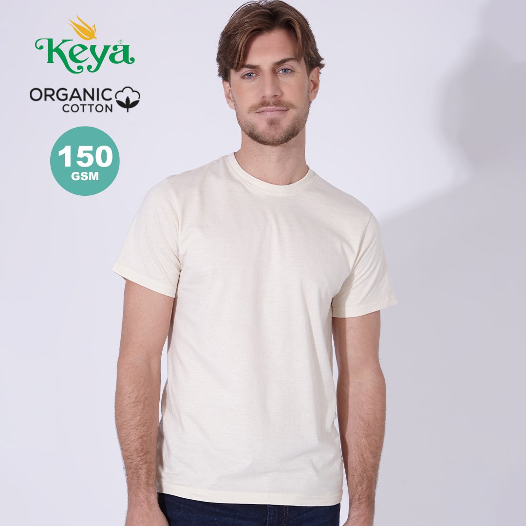 T-shirt Keya Organic MC 150 pour adulte, 100% coton bio, jersey simple 150g / m2. Couleur naturelle et disponible dans les tailles S, M, L, XL, XXL. Étiquette label matière Coton organique pour véhiculer une image éco-friendly.