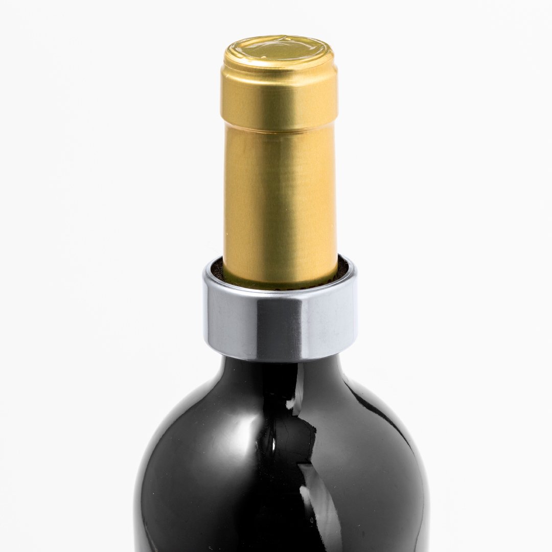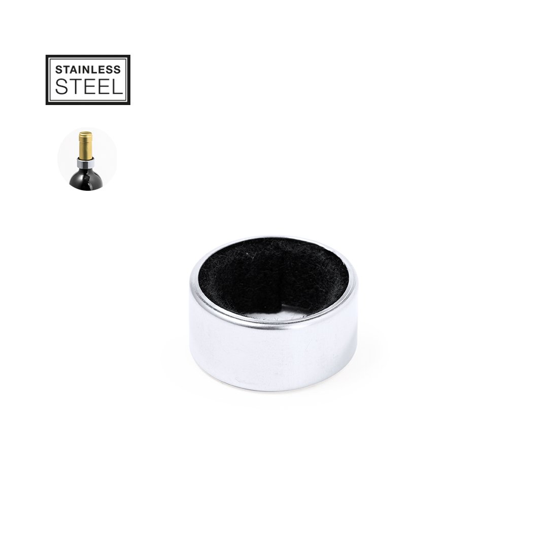 Pratique collecteur de gouttes en acier inoxydable. Bague adaptable au goulot de la bouteille grâce à son intérieur rembourré et recouvert de velours, pour recueillir la goutte excédentaire lors du service. Avec extérieur en acier inox brillant qui le rend résistant. Présenté dans un boîtier individuel design kraft.