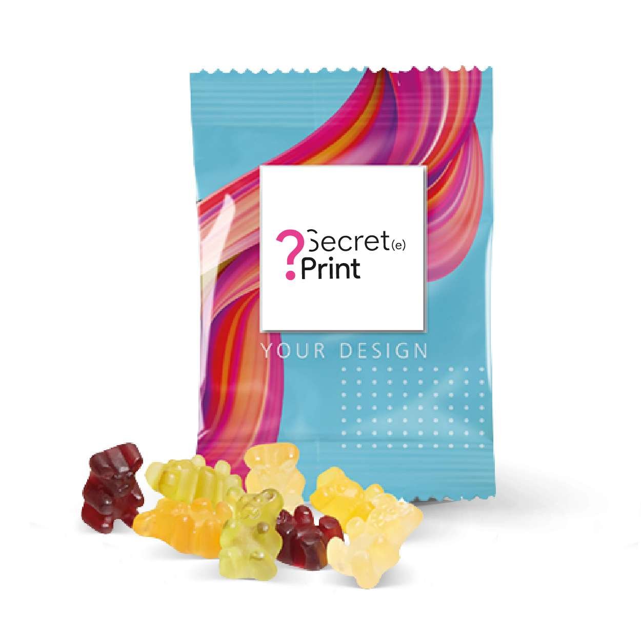 Les Bonbons oursons au jus de fruits sont une délicieuse friandise contenant 25 % de fruits en plus qu’un bonbon ourson ordinaire. Ces oursons sont spécialement formulés pour apporter un supplément de nutriments tout en étant irrésistiblement fruités et délicieux. Ils sont disponibles dans une variété de couleurs et de saveurs, mélangés pour offrir une expérience gustative unique.Ces bonbons oursons au jus de fruits sont emballés dans un sachet blanc brillant, entièrement personnalisable selon vos préférences. Vous pouvez y ajouter votre logo, design ou message pour créer un produit unique qui reflète votre marque ou événement.Voici les ingrédients qui composent ces délicieux bonbons :- Sirop de glucose- Eau- Sucre- Gélatine- Jus de raisin blanc concentré- Jus de cassis concentré- Acide citrique- Arômes naturels- Édulcorant naturel à base de fruits- Agent d’enrobage : cire de carnauba- Jus de pomme concentré- Extraits de plantes (spiruline, carthame, sureau, radis rouge)- Jus concentré d’abricot- Jus concentré de poireCes bonbons oursons offrent une expérience gustative fruitée et sont parfaits pour satisfaire les papilles de tous ceux qui les dégustent. Avec une teneur accrue en fruits, ils constituent également une option plus nutritive par rapport aux bonbons oursons traditionnels.Personnalisez l’emballage de ces Bonbons oursons au jus de fruits pour les rendre encore plus attractifs et adaptés à votre marque ou événement. Ils sont parfaits comme cadeaux promotionnels, pour les événements d’entreprise, les goodies ou simplement pour le plaisir de partager une douceur avec vos clients, collaborateurs, amis ou famille. Offrez ces bonbons oursons au jus de fruits et faites plaisir à ceux qui les dégusteront tout en faisant la promotion de votre marque avec une gourmandise irrésistible !