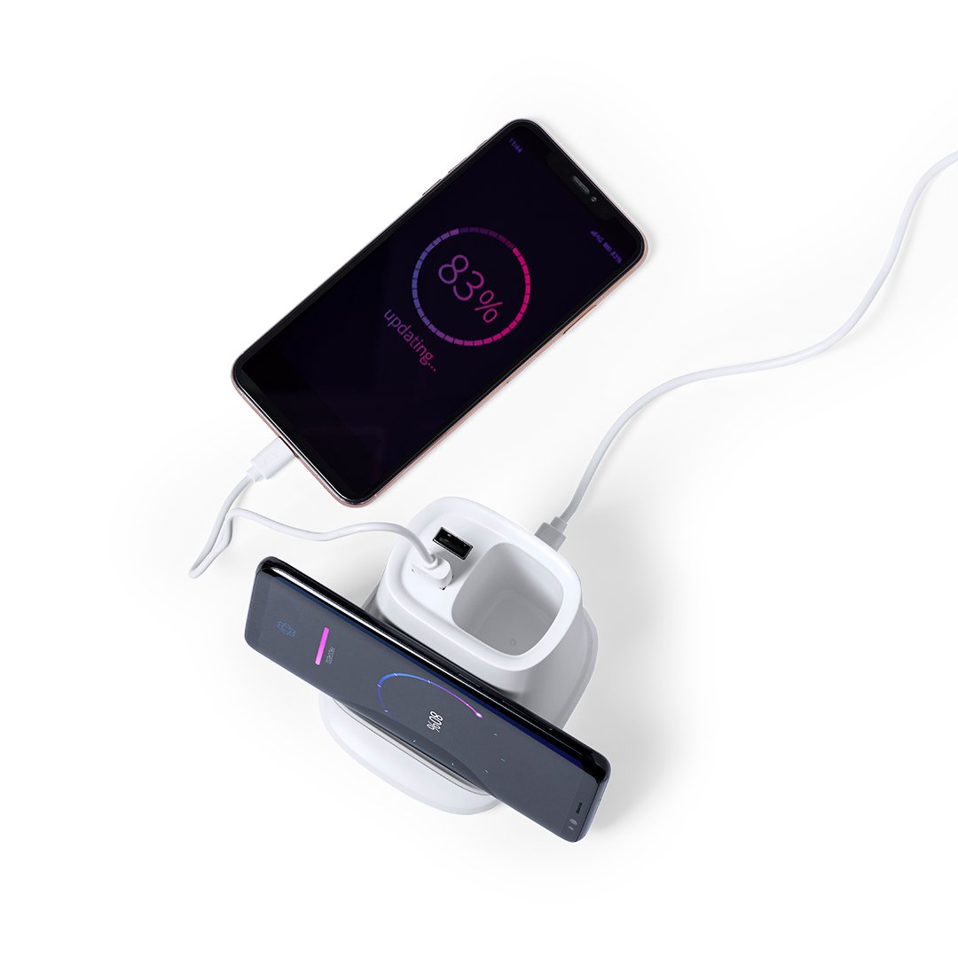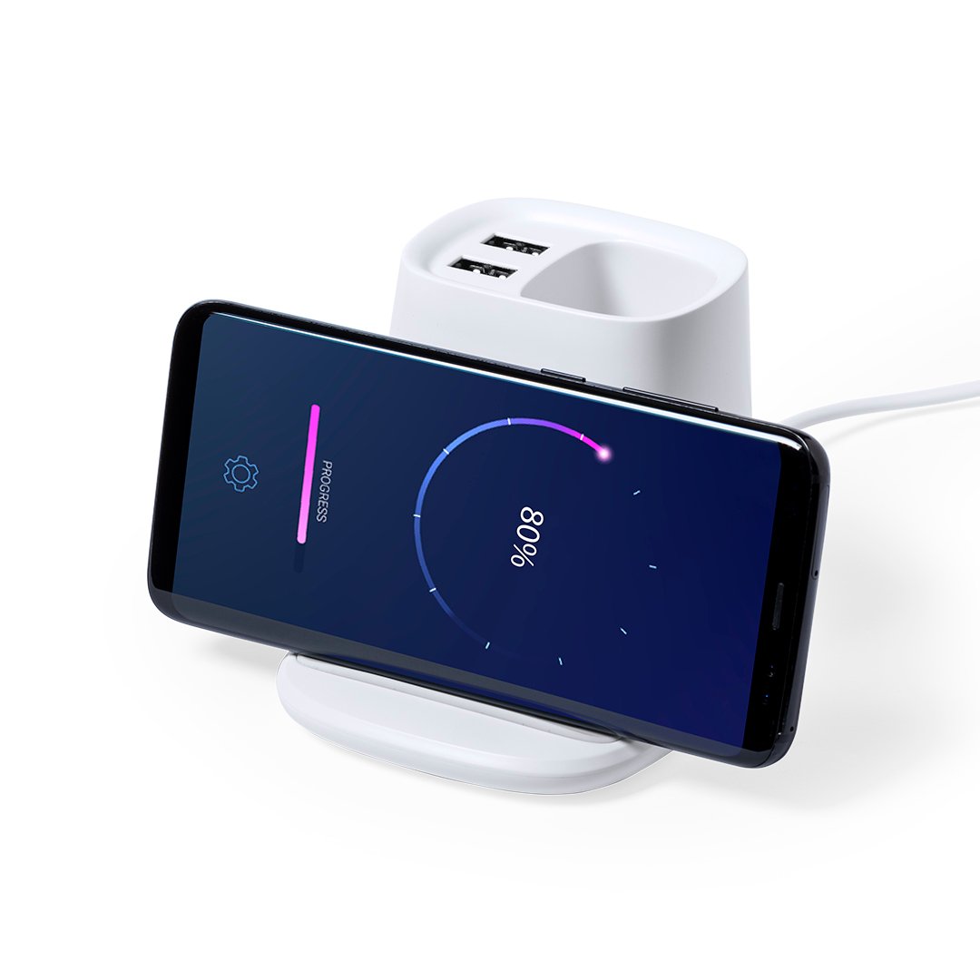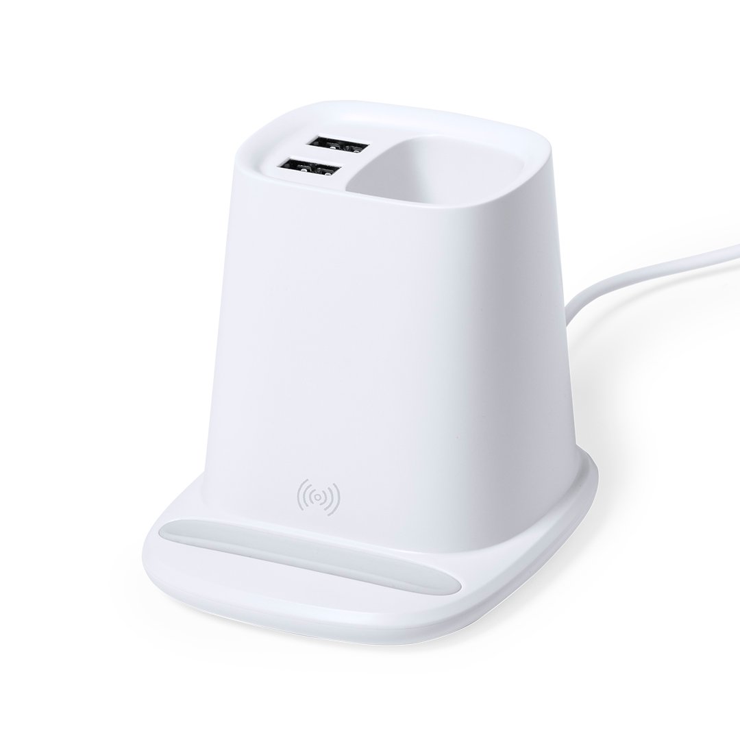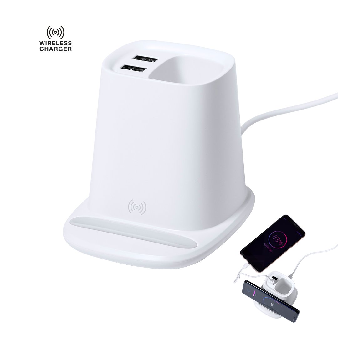 Stylo multifonction 4-en-1, fait de matériau ABS blanc durable.Avec des fonctions de stylet, support de smartphone, chargeur sans fil 5W et 2 sorties USB de 2 2000 mA. Port USB inférieur, adapté au transfert de données. Compatible avec les smartphones avec la technologie de recharge sans fil. Comprend un câble de type C de 1 mètre de long et est présenté dans une boîte de conception attrayante. Le manuel d’instructions est disponible en espagnol et en anglais.