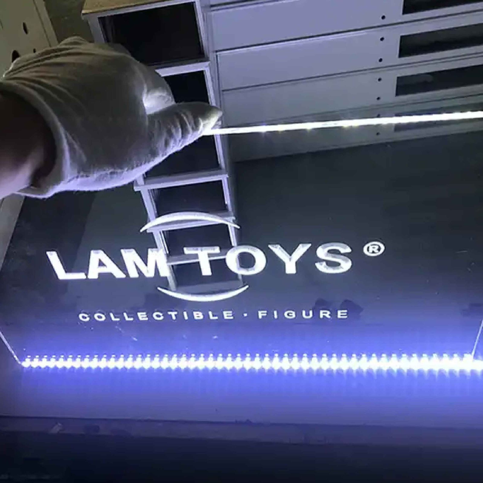 Illuminez votre espace avec notre plaque imprimée sur méthacrylate équipée de lumière filtrante LED ! Cette plaque offre la possibilité de la fixer au mur ou au plafond et est disponible dans plusieurs couleurs, y compris en RGB, ce qui vous permet de sélectionner la couleur à l’aide d’une télécommande. Personnalisez-la avec votre texte ou logo, imprimé à l’encre blanche sur une plaque de plexiglas transparent de 10 mm d’épaisseur.La lumière du filtre fonctionne de manière simple : chez Secretprint nous gravons au laser la couche superficielle d’un méthacrylate transparent de 10 mm d’épaisseur. Ensuite, nous plaçons une bande LED à l’intérieur d’un diffuseur en aluminium dans sa partie supérieure. Lorsque la lumière est projetée, les zones gravées s’illuminent, laissant la zone transparente éteinte. Pour les tailles plus grandes, l’installation du profil en aluminium sur tout le périmètre peut être nécessaire pour obtenir une couleur uniforme.Les utilisations courantes de ces enseignes lumineuses incluent la signalisation dans les magasins et les grands magasins, la décoration, les caractères, le merchandising, et bien plus encore. Elles offrent une forte luminosité, ce qui les rend idéales pour les sorties de secours. La lumière peut être régulée et séquencée avec un variateur (non inclus dans le prix). Choisissez parmi une variété de couleurs d’éclairage, y compris le rouge, le vert, le bleu, le fuchsia, le jaune, le blanc, et le blanc chaleureux.Forte luminosité / Facilité d’installation / Mur ou au plafond / Le variateur pour régler l’intensité lumineuse n’est pas inclus dans le prix