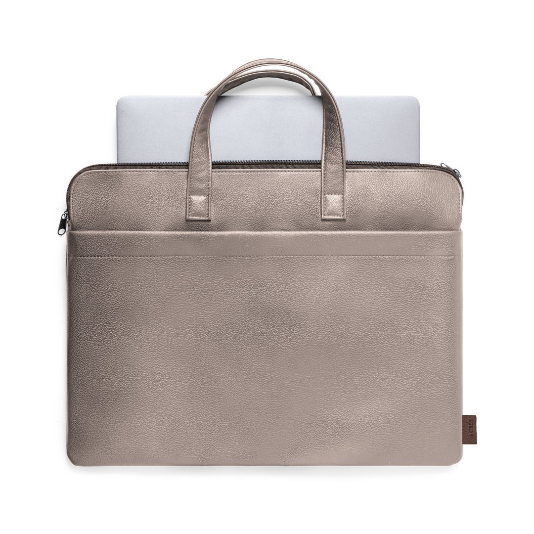 Porte-documents haut de gamme résistant, en cuir recyclé. Compartiment principal avec fermeture éclair et double poignée en métal. Intérieur rembourré, avec poche extérieure et poignées renforcées assorties. Étiquette extérieure avec cuir recyclé distinctif.Le cuir recyclé récupère les fibres rejetées dans les processus de fabrication du cuir, minimisant les déchets de matériaux, aidant à réduire l’impact environnemental tout en conservant ses propriétés d’origine.