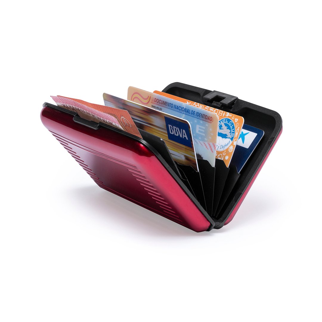 Porte-cartes avec technologie de sécurité RFID (Radio Frequency Identification) qui sécurise les données de la carte. De conception résistante en aluminium, avec 6 compartiments en accordéon et zone lisse à l´extérieur prévue pour le marquage en gravure laser.