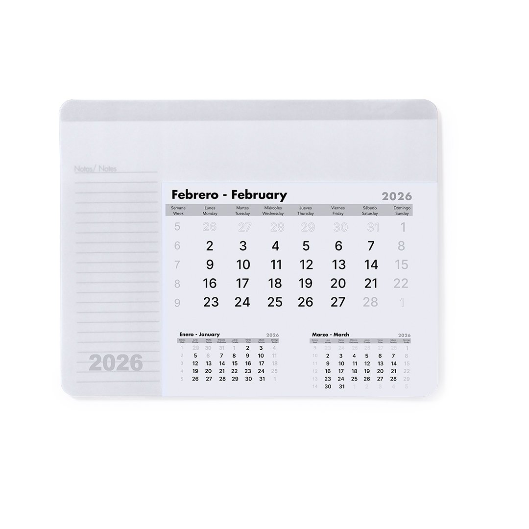 Tapis de calendrier avec une finition en PVC souple. Mise en page du mois en cours/du mois précédent/du mois suivant, avec un espace pour les annotations. Base rembourrée antidérapante et disponible dans une large gamme de couleurs.
