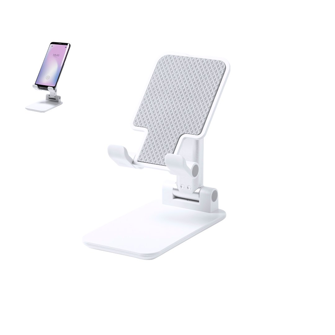 Support pliable pour smartphones et tablettes. Réglable en hauteur, il comprend des protections en caoutchouc antidérapantes sur la base et le support. En finition blanche sobre et avec une grande surface de marquage, particulièrement adapté à la tampographie. Présenté dans une boîte de design attrayante.