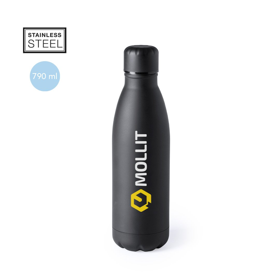 Bidon en acier inox de 790ml. Avec bouchon de sécurité à vis. En couleurs vives et variées. Présenté dans une boîte de conception attrayante.