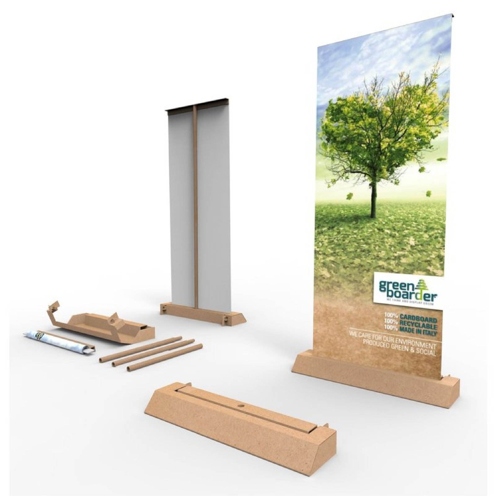 À la recherche d’une alternative écologique au traditionnel kakémono roll-up ? Découvrez notre tout nouveau kakémono roll-up avec base en carton recyclé, conçu pour une installation rapide et facile. Que vous souhaitiez un kit complet ou simplement la toile, nous avons tout ce qu’il vous faut. La toile est fournie avec du ruban adhésif double face pour une fixation pratique !La base en carton est fabriquée à partir de carton double vague respectueux de l’environnement (FSC/PAP20), tandis que la toile imprimée est réalisée à partir de papier pour affiche de 200 g. Cette toile est conçue pour une utilisation en intérieur et doit être installée sur une surface plane. Elle est disponible dans un format unique de 80 × 200 cm. Lors de la livraison, vous recevrez également un guide de montage détaillé pour une installation sans tracas.Besoin de remplacer ou de mettre à jour votre toile ? Pas de problème ! Vous pouvez commander l’impression de la toile seule. Notre kakémono roll-up est conçu pour une utilisation répétée, offrant ainsi une solution durable pour vos besoins promotionnels.Optez pour notre kakémono roll-up respectueux de l’environnement dès maintenant et faites un geste pour la planète tout en mettant en valeur votre message !Respectueux de l’environnement / Rapide et facile à assembler / Un seul format disponible