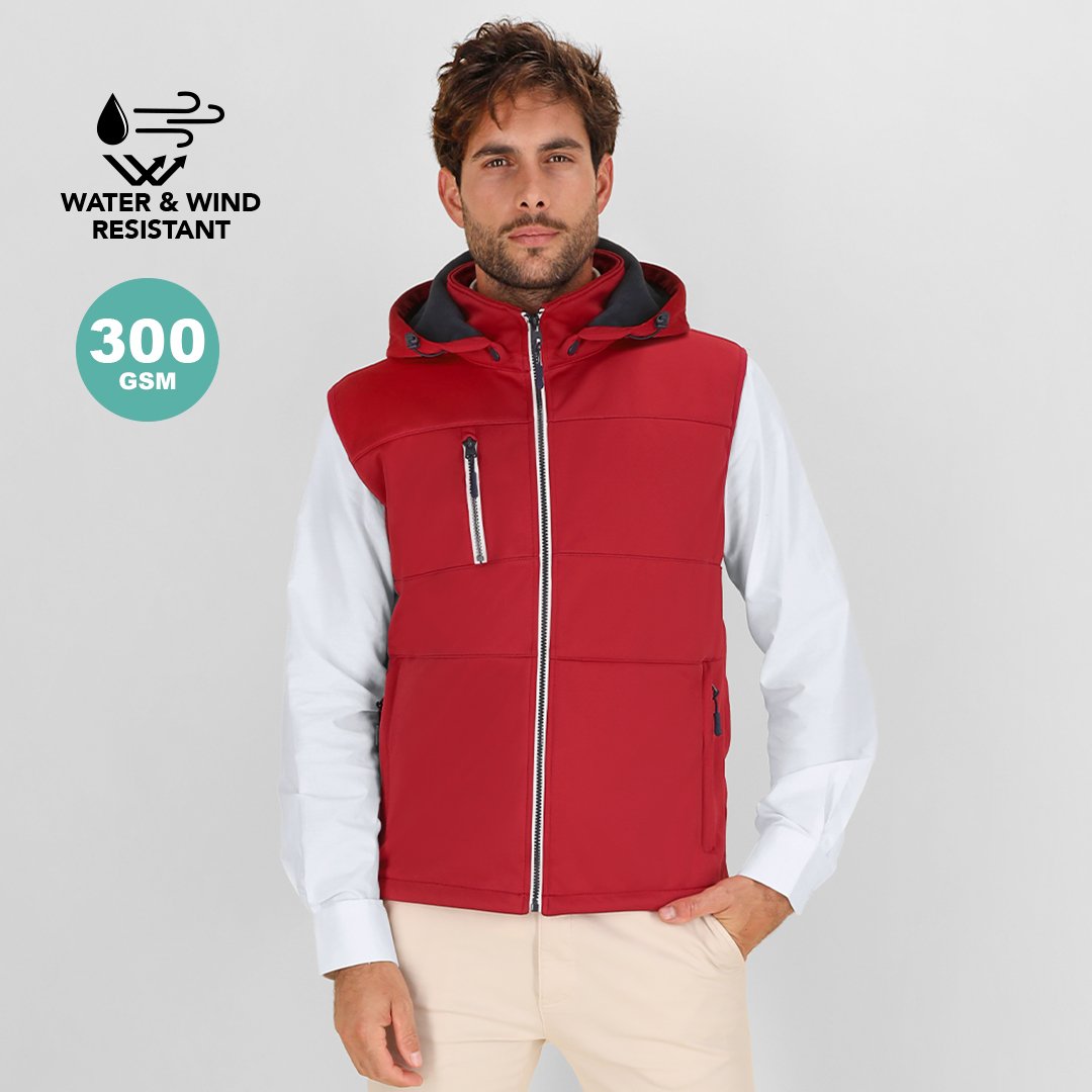 Gilet en matière softshell 300g/m2 résistante et respirante. Coupe moderne, avec un zip central, des poches latérales et une pratique poche poitrine avec fermetures zip et anses contrastées. Col montant avec capuche ajustable et amovible. Ourlet inférieur avec cordon de serrage réglable. Extérieur softshell résistant au vent et à l’eau et intérieur chaud en micropolaire de couleur contrastante. Disponible en tailles XS, S, M, L, XL, XXL.