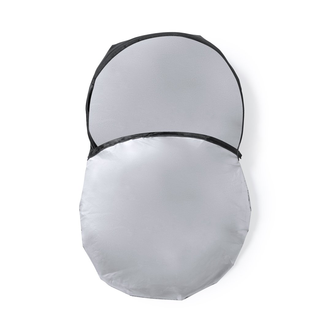 Parasol pliant original en polyester argenté résistant. Léger et mesure 150 x 70 cm, valable pour les voitures et les camionnettes. Garnitures renforcées, avec un système de pliage simple et une couverture individuelle assortie. Présentation dépliée sur plaque pour une impression facile, avec couvertures séparées.