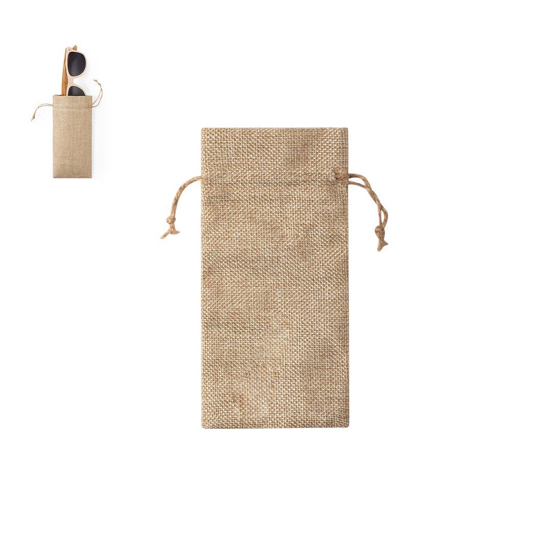 Etui en polyester, écru avec fermeture par cordelettes réglables et intérieur doux.