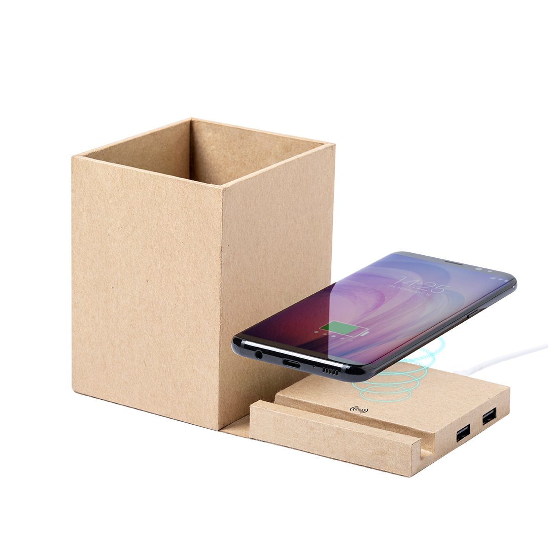Stylo multifonction 4-en-1 de la gamme éco-friendly, fabriqué en carton recyclé, contribuant à la conservation des forêts et réduisant considérablement l’empreinte carbone.Avec fonctions de stylo, support pour smartphone, chargeur sans fil et port USB (2xUSB 2.0). Pliable et avec réglage magnétique. Compatible avec les smartphones dotés de la technologie de charge sans fil. Comprend un câble micro USB blanc d’un mètre de long. Présenté dans une jolie boîte éco-conçue, avec un manuel d’instructions en anglais et en espagnol.