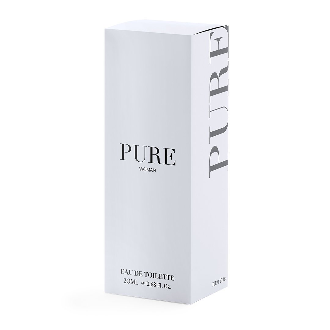 Pure Eau de toilette pour femme. Un mélange parfait de notes sucrées qui mettent en valeur la silhouette moderne de la composition et apportent une touche enveloppante. En spray rechargeable de 20 ml avec bouchon transparent. Présenté dans une boîte design haut de gamme.