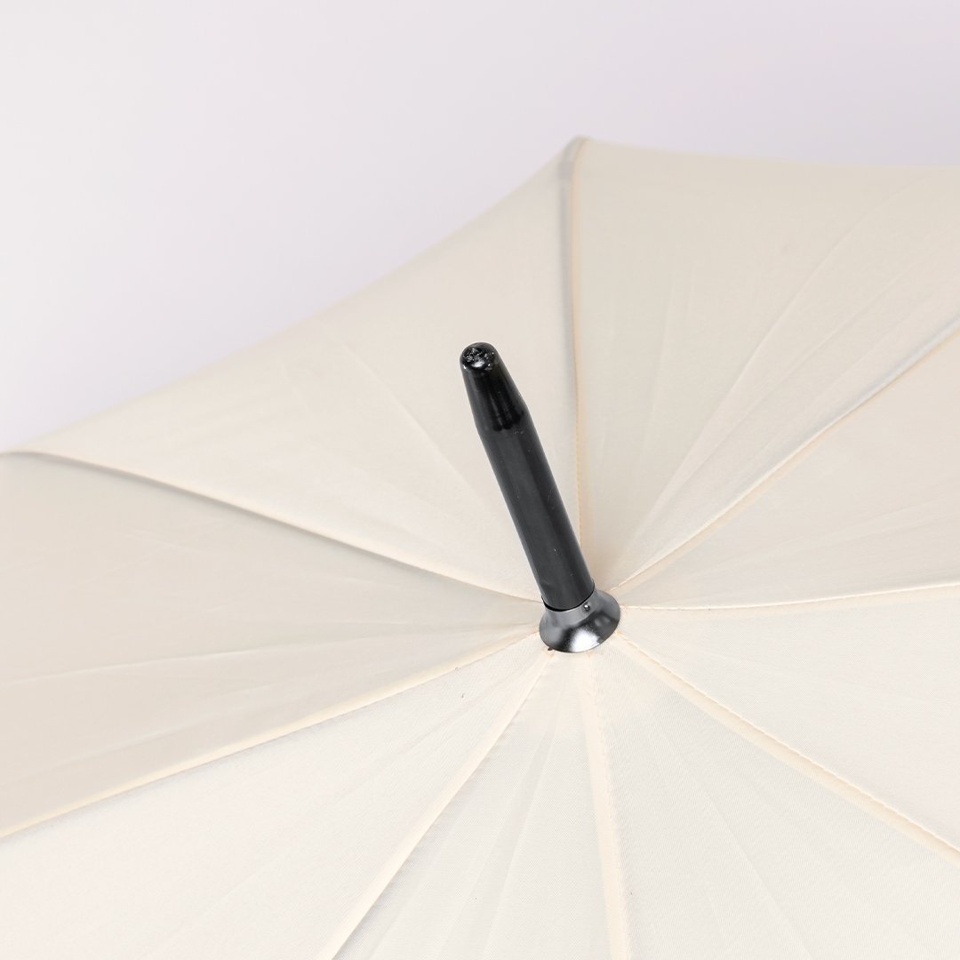 Parapluie à 8 panneaux et 120 cm de diamètre, en matériau pongé 190T résistant avec une finition naturelle. Ouverture automatique et mécanisme anti-vent. Avec tiges en fibre noire, manche en bois et sangle avec fermeture velcro.