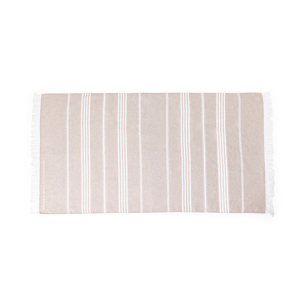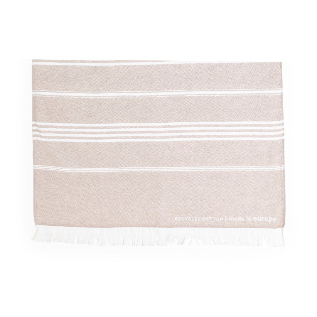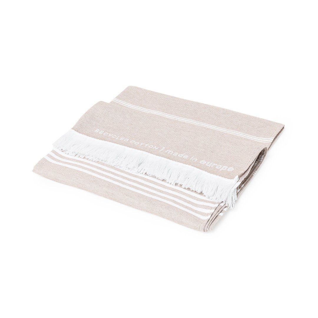Serviette Pareo 2 en 1 de la ligne nature et finition couleur terre. De fabrication européenne et en combinaison de coton recyclé et de polyester de 250g/m2. Avec la certification GRS (Global Recycled Standard) qui accrédite l’origine recyclée du matériau utilisé dans la fabrication du produit. Taille 150 x 80 cm.