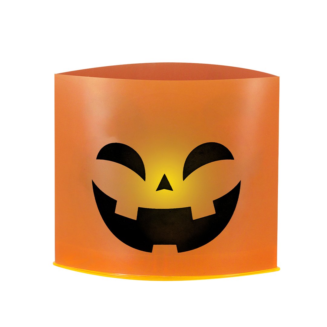 Cadeau d’Halloween avec des motifs différents sur chaque face. Avec éclairage LED alimenté par des piles bouton (incluses) et un bouton pratique pour allumer/éteindre.