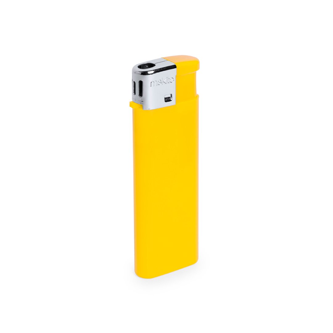 Briquet à gaz avec mécanisme électrique. Avec sécurité enfant, rechargeable, régulateur de flamme et disponible dans une large gamme de couleurs avec une finition unie. Servi en boîtes de 50 unités de la même couleur.