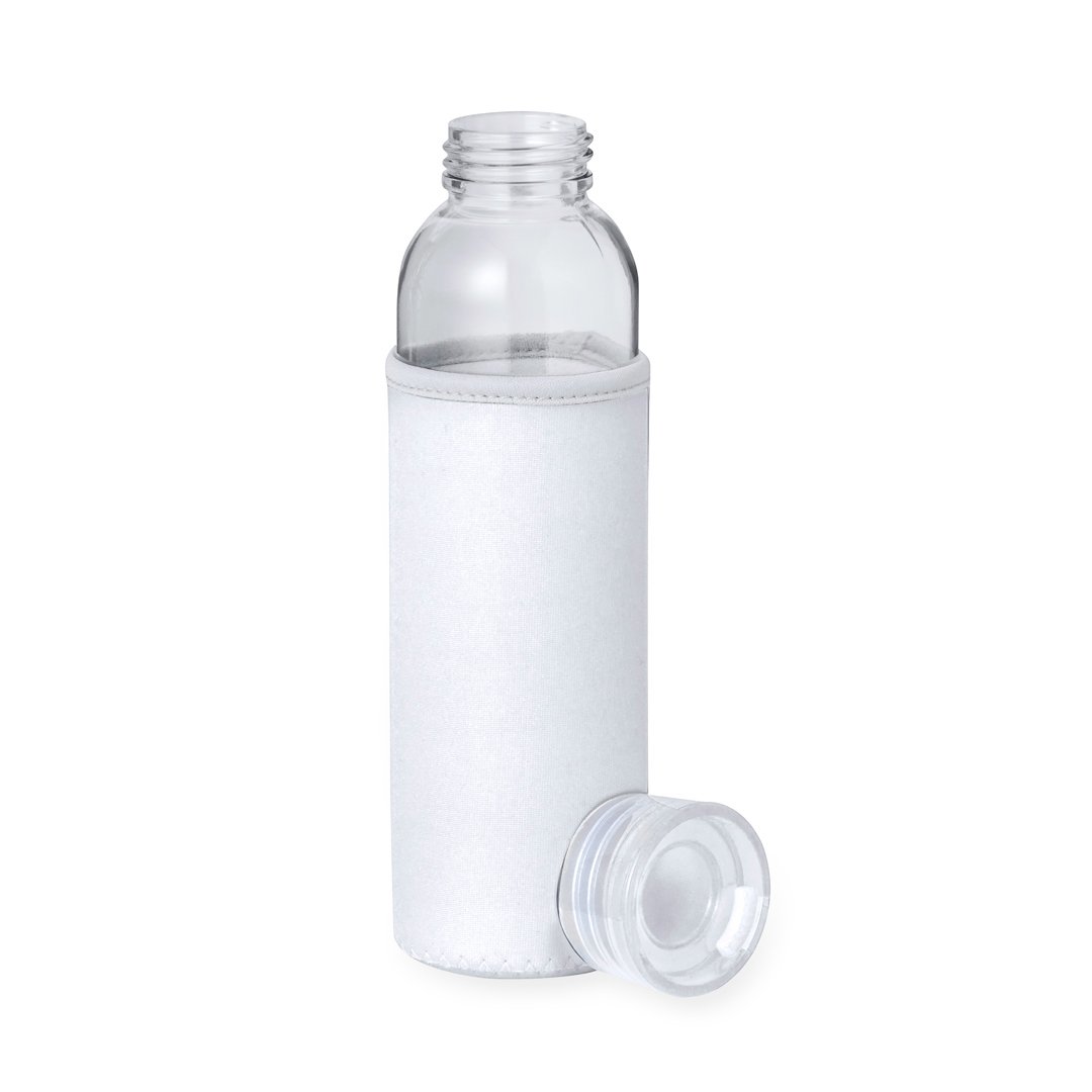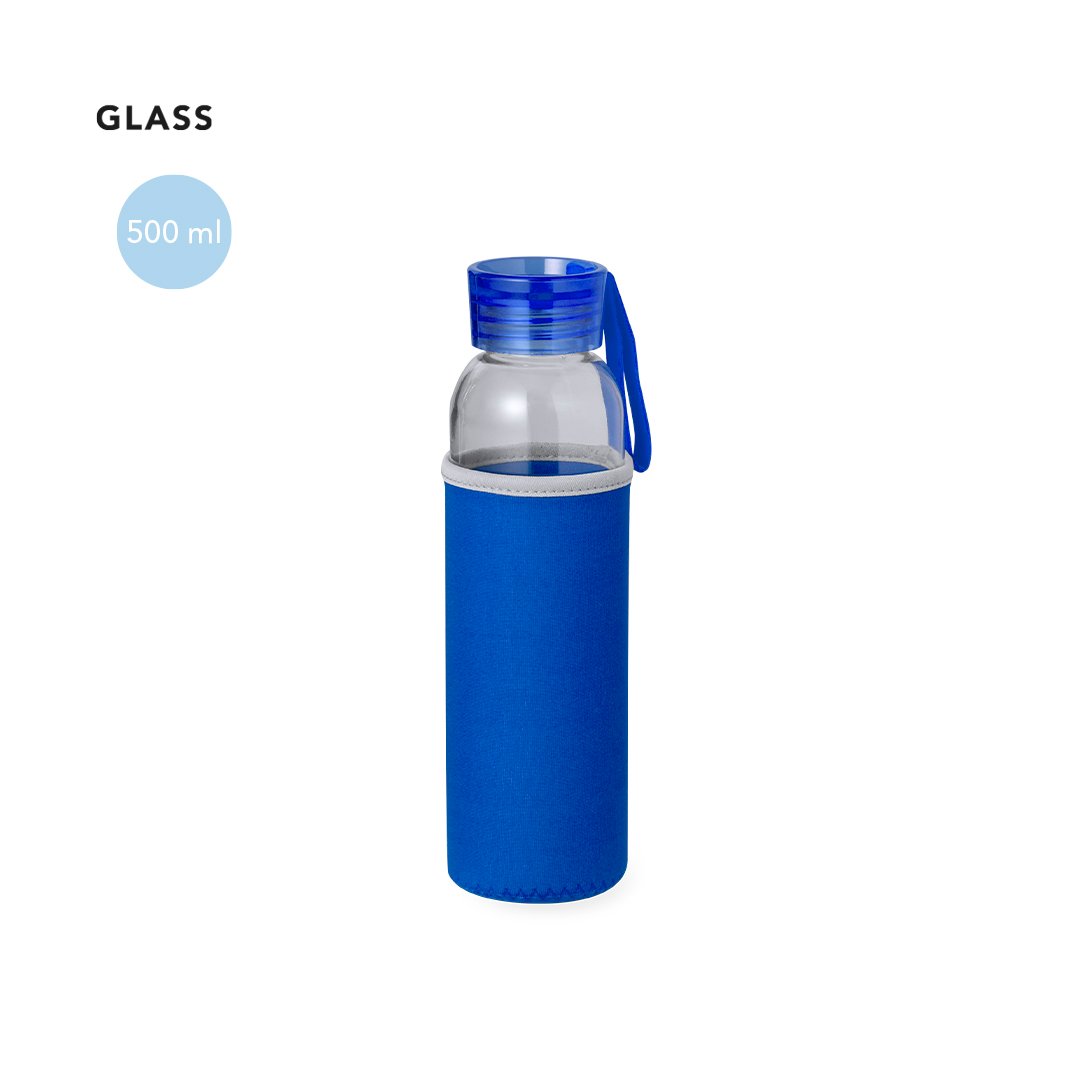 Bidon de 500ml de capacité. Corps en verre, avec bouchon à vis et poignée en silicone pratique pour un transport facile. Comprend un étui assorti en soft shell. Disponible dans une gamme variée de couleurs et présenté dans une boîte individuelle au design kraft attrayant.