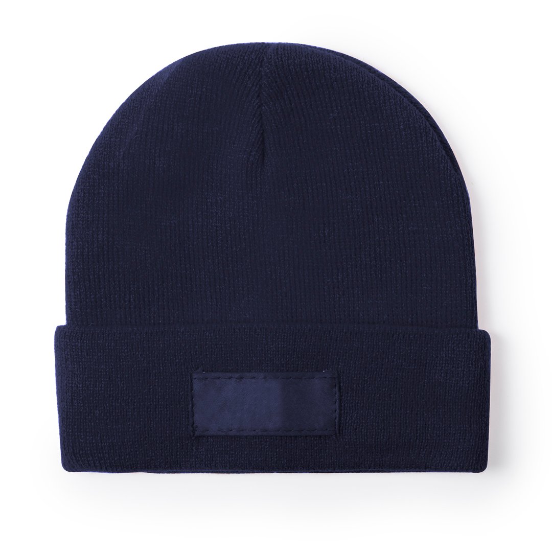 Bonnet doux et chaud pour enfants en matériau acrylique. Élastique et facile à ajuster, avec un ourlet assorti et une étiquette frontale pour le marquage.