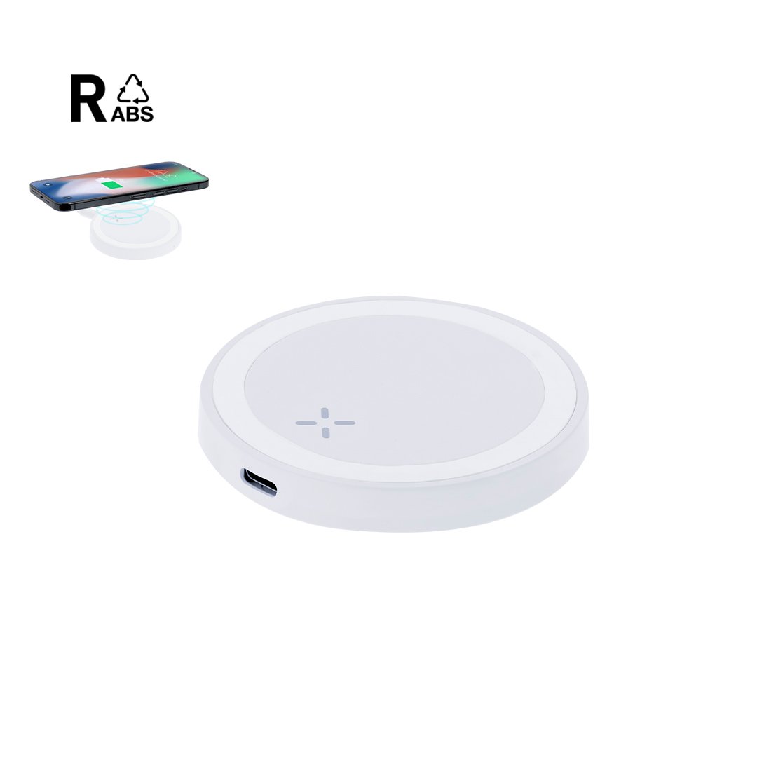 Chargeur sans fil 15W en ABS recyclé (RAB). Compatible avec les appareils équipés de la technologie de charge sans fil Qi. Base antidérapante, avec câble de charge Type C inclus.Le RABS est un plastique hautement recyclable d’une grande résistance et avec de nombreuses applications qui en font une solution écologique. Fabriqué conformément aux normes RoHS et en conformité avec les exigences de sécurité suivantes :Système de protection contre la surchauffe.Système de protection contre la surcharge.Système de verrouillage pour éviter les courts-circuits.
