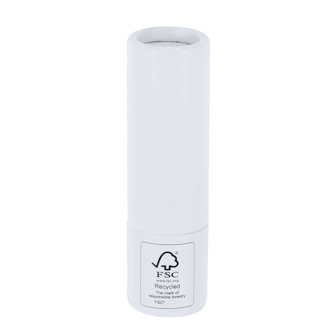 Baume à lèvres fabriqué à partir de carton recyclé certifié FSC. Parfum vanille. Protection SPF15. Testé dermatologiquement. Étiquette FSC® sur l’emballage.