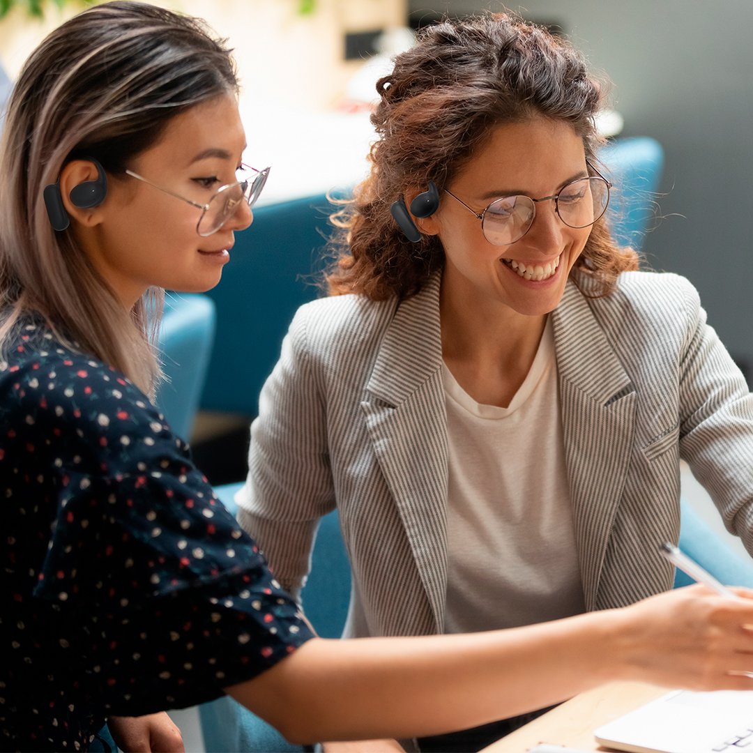Écouteurs de traduction instantanée avec traduction en 135 langues. Comprend plusieurs modes de fonctionnement :- Traduction simultanée, les écouteurs et le téléphone sont utilisés ensemble pour effectuer des traductions en temps réel.- Traducteur automatique, détecte et traduit automatiquement la langue parlée.- Mode double écoute, permet à deux personnes d’utiliser un écouteur chacune pour maintenir des conversations traduites instantanément.Avec synchronisation automatique par Bluetooth, contrôle des appels et de la musique. Compatibilité avec l’application exclusive EarJoy pour iOS et Android.