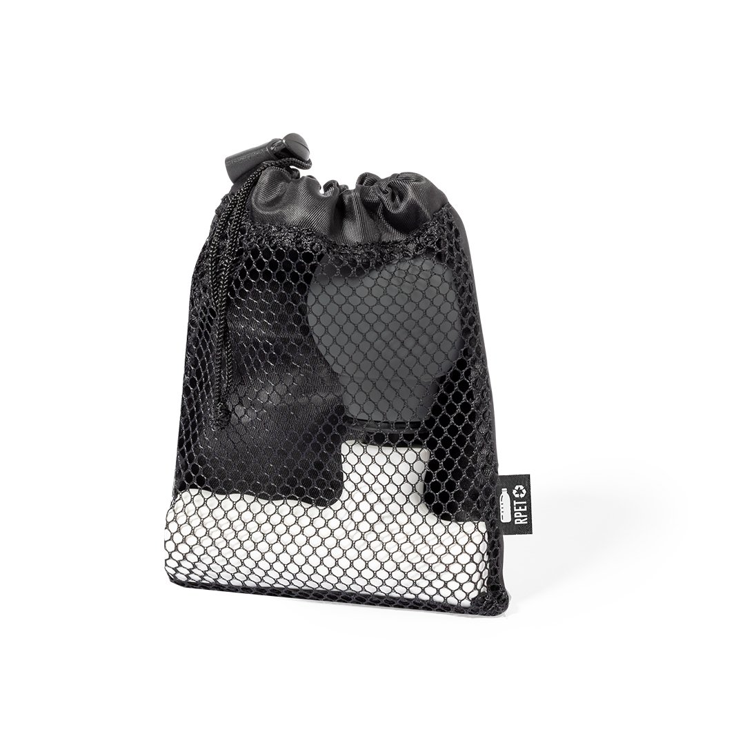 Masseur électrique. Aide à détendre les muscles, soulager les effets de l’entraînement, relâcher les tensions et revitaliser le corps. Avec deux niveaux d’intensité. Batterie rechargeable longue durée de 800 mAh – câble USB inclus. Manuel d’utilisation en espagnol et en anglais.Présenté dans une pochette en polyester RPET avec cordon de serrage, fabriquée à partir de plastique recyclé pour encourager la réutilisation des déchets plastiques et contribuer à la durabilité de la planète. Étiquette distinctive RPET sur la pochette.