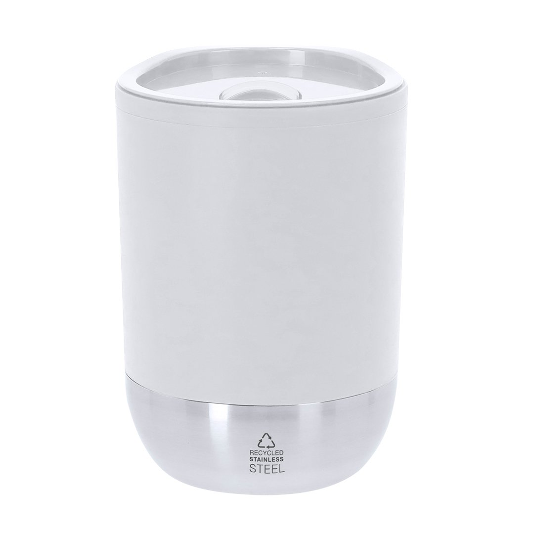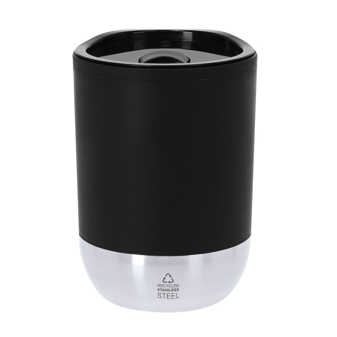 Tasse isotherme d’une capacité de 290 ml. Fabriquée en PP recyclé à double paroi robuste, en combinaison avec une base en acier inoxydable recyclé. Couvercle à ouverture facile avec distributeur, sans BPA. Il est idéal pour votre bureau, table ou toute autre surface où vous pouvez tranquillement savourer votre boisson préférée. Certifiée de qualité alimentaire, garantissant la sécurité lorsque les aliments entrent en contact avec le matériau utilisé pour fabriquer le produit. Avec logo en acier inoxydable recyclé.Le PP recyclé est un plastique recyclé et hautement recyclable, très résistant et adapté à une multitude d’applications.L’acier est l’un des matériaux les plus recherchés et se trouve presque partout, des produits du quotidien aux grands bâtiments. Il a d’innombrables propriétés, y compris la durabilité et un haut degré de réutilisabilité, en faisant une alternative très appréciée pour les solutions de durabilité. Correctement traité, il permet d’obtenir de nouvelles ressources à usage infini.