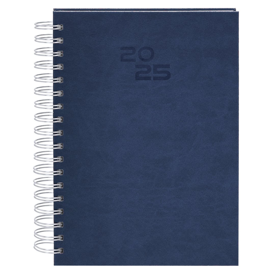 Agenda à anneaux format B5 en cuir PU doux et résistant, avec couvertures rigides. Inclus une boîte de présentation en kraft.Design page par jour et pages avec coin découpé. En 2 langues : espagnol et anglais.