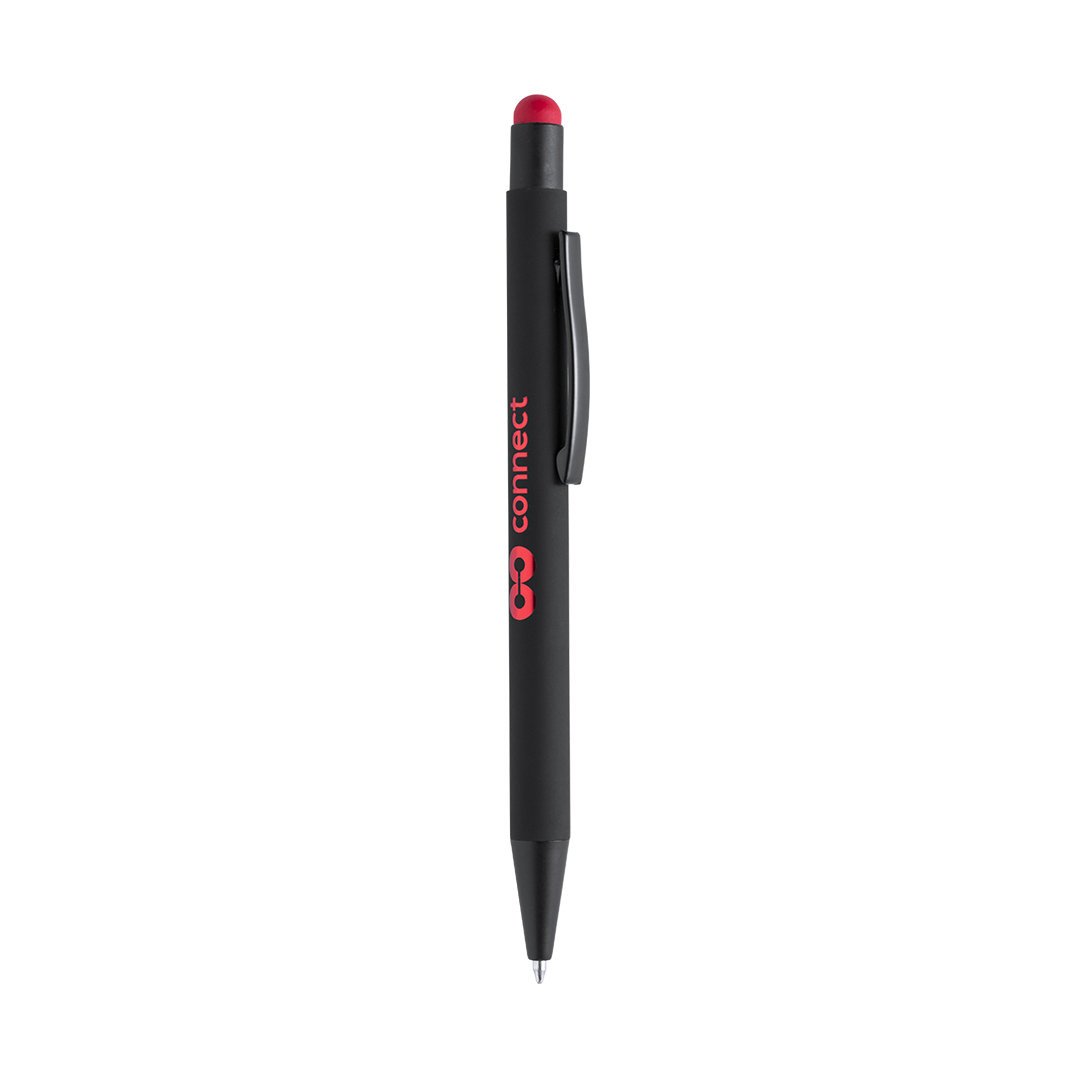 Stylet à mécanisme à bouton-poussoir avec corps à finition noire unie et bouton-poussoir dans une variété de couleurs. Clip métallique de couleur noire. Spécialement conçu pour le marquage laser et avec un revêtement extérieur spécial pour votre publicité, il est parfaitement enregistré, en harmonie avec la couleur du pointeur. Cartouche Jumbo et encre bleue.