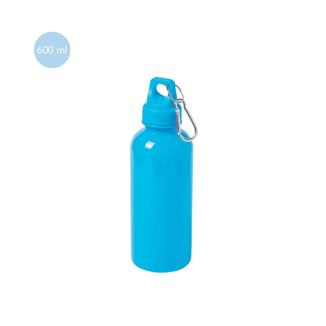 Gourde de 600 ml avec corps en PS translucide dans des couleurs vives et variées. Avec bouchon à vis de sécurité et mousqueton de transport en métal.Manuel d’instructions disponible en espagnol et en anglais.